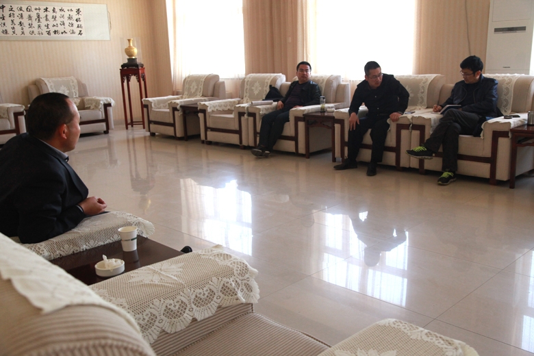 2017年4月13日,中国建设银行甘肃省分行审批部高级客户经理时志文、业务经理马世骏一行就民勤公司近期进展情况进行调研。民勤公司总经理杨忠宝、财务部长裴青武陪同调研。