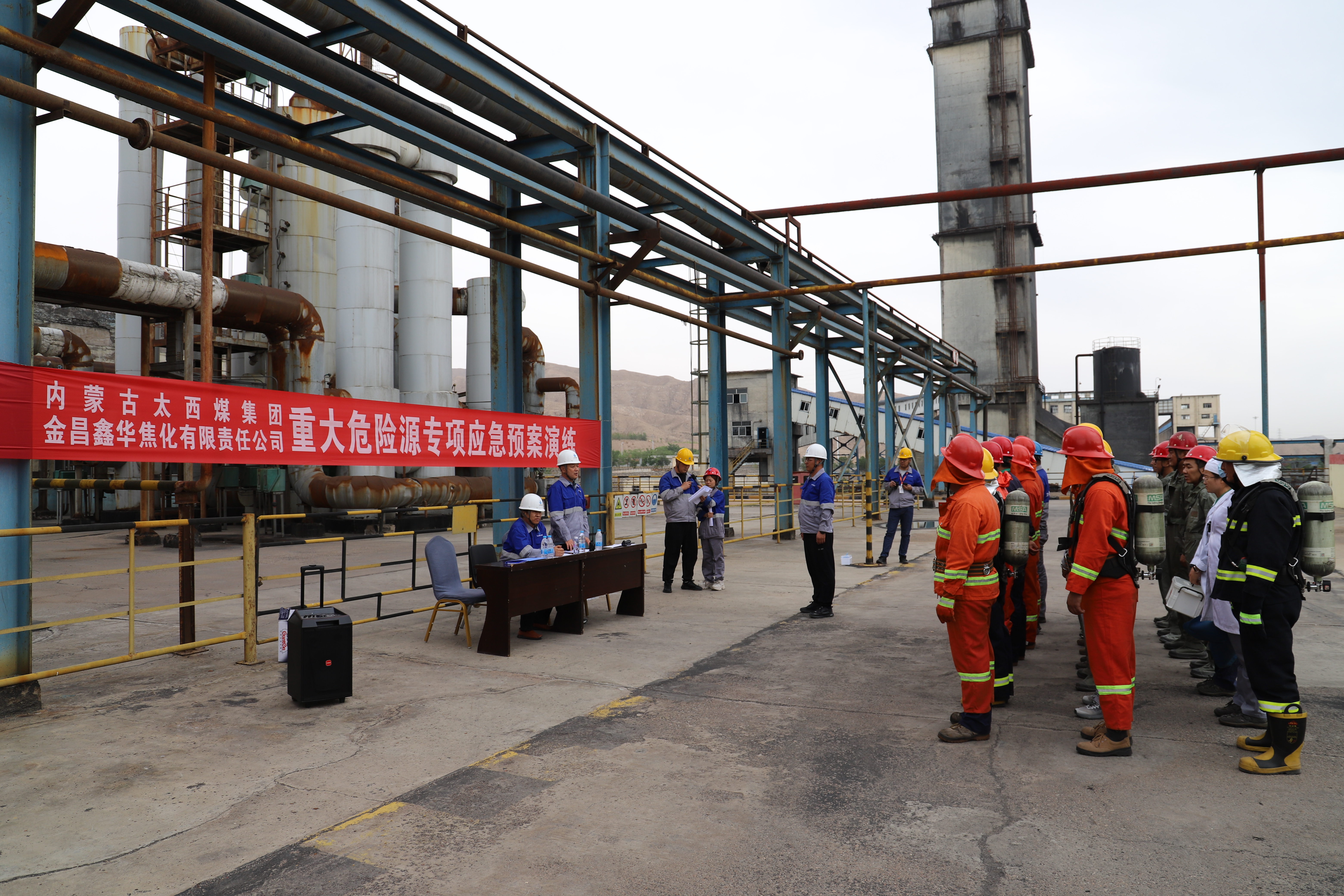 7月1日上午,按照“安全生产月”实施方案暨年度安全生产应急演练计划安排,金昌鑫华焦化公司举行重大危险源专项应急预案演练。