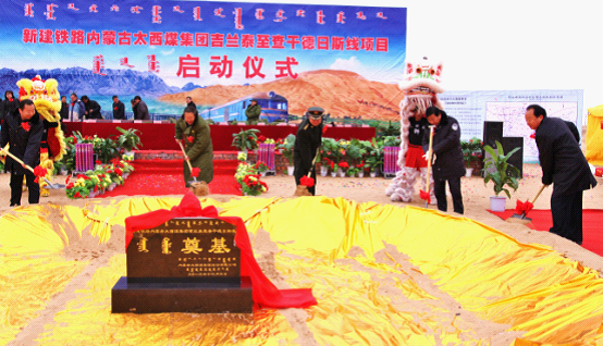 12月2日,新建铁路内蒙古太西煤集团吉兰泰至查干德日斯项目启动仪式在吉兰太隆重举行。内蒙古自治区铁路办副主任刘文华,盟委委员、常务副盟长魏国权,阿拉善军分区司令员李德海,盟人大工委副主任孙万元,副盟长周岩,盟政协副主席王东等领导参加活动仪式。集团公司董事长王以廷、副董事长王敬华、总裁王海霞出席庆典。