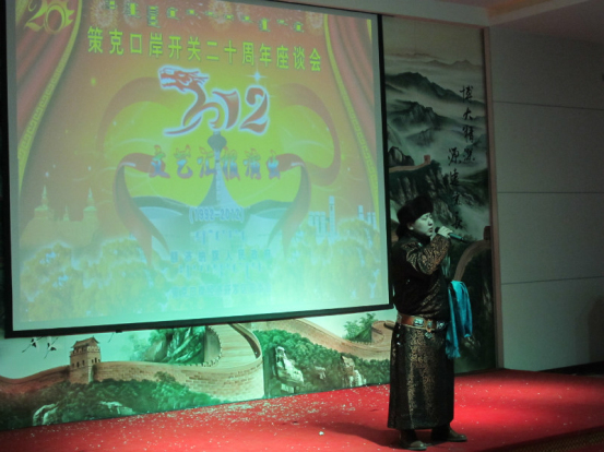 来自额济纳旗蒙古族学校的蒙古国留学生,策克口岸联建单位以及入住策克口岸的各企业员工欢聚一堂,载歌载舞,表达了中蒙两国人民庆祝策克口岸开关20周年的喜悦心情以及对策克口岸发展的美好祝愿。