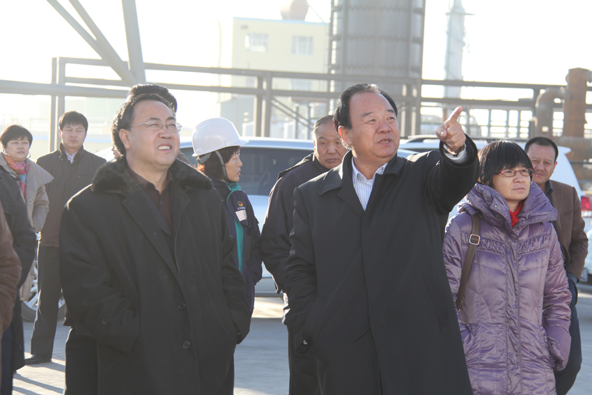 董事长王以廷陪同甘肃省发改委、环保局领导到金昌鑫华焦化公司视察。