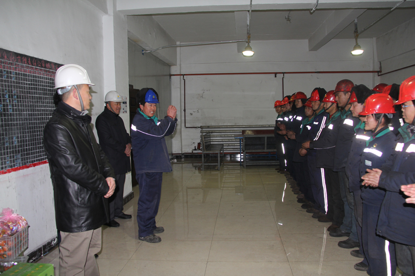 变电所、化验室、锅炉房等工段,领导与换班的员工们一一握手问好,为他们送上蛇年的祝福,并嘱咐他们在春节期间一定要做好安全防护工作、认真坚守岗位,确保春节期间的正常生产。