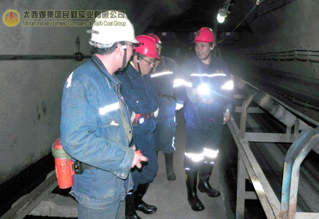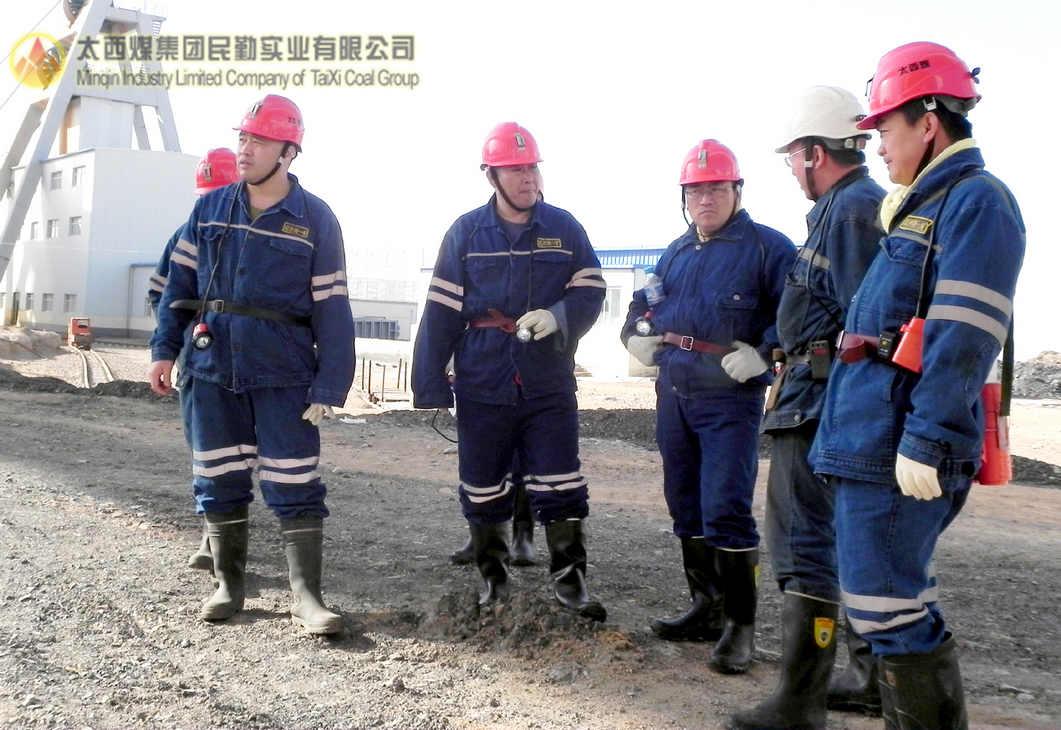 民勤实业有限公司总经理杨忠宝(左二)正在视察井下工程