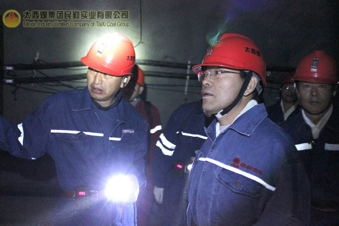 民勤公司副总经理袁万年、红一矿矿长么民阳、副矿长佟保勤、总工程师李彦周及各部室负责人陪同检查。