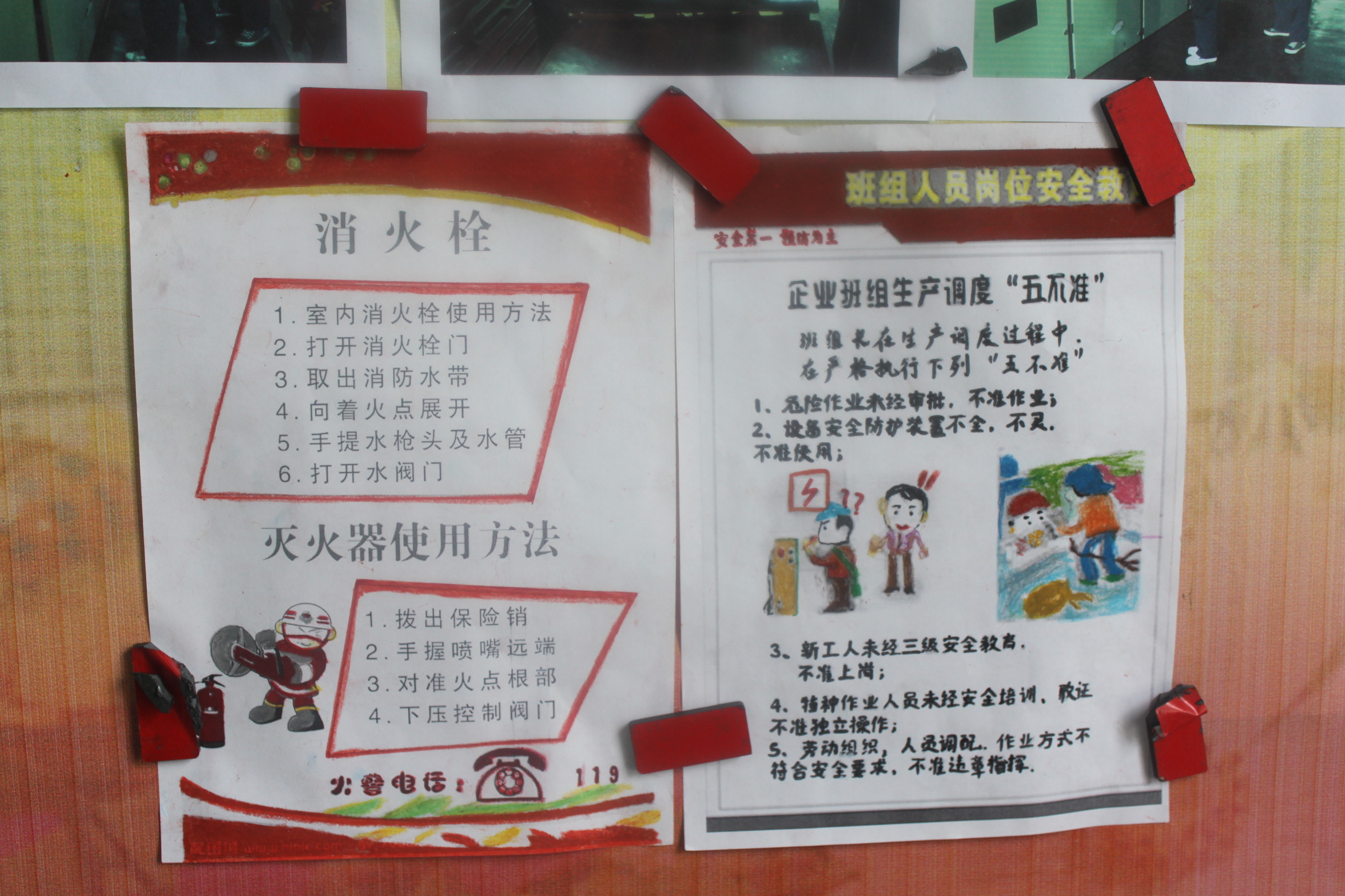 自开展班组安全建设工作以来,乌斯太焦化公司以“打造杰出班组”为目标,以班组文化建设为主线,把创建学习型组织、班组安全文化建设、创先争优等有机结合起来,开展了班组文化“上墙”活动。班组“文化墙”作为企业和班组整体素质及精神面貌的一面镜子,根据各基层班组特点,以不同的形式展现了乌斯太焦化公司班组文化,其内容主要包含了:“企业安全目标”、“企业安全方针”、“企业安全承诺”“班组简介”、“班务公开”、“风险提示”、“违章曝光”、“知识角”、“工作计划与总结”和“员工天地”等专题栏目,通过员工自己动手参与,积极参与班组建设,把乌斯太焦化公司安全理念、班组各方面的最新动态及相关作业知识呈现给大家,有效地调动了班组职工创先争优积极性,为班组建设带来新的一缕风采。