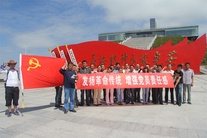 在六盘山革命纪念馆前红军会师鲜艳的旗帜下,全体党员面向党旗举起拳头,重温入党誓词,缅怀革命先烈。通过欣赏六盘山国家森林公园的秀美山水、参观革命纪念馆的革命历程和体会二万五千里的长征精神,广大党员深刻的接受了一次红色革命传统教育。