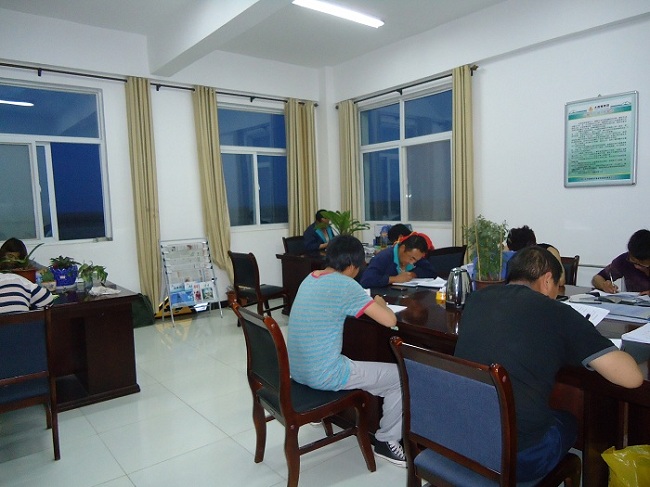 自签订师带徒协议以来,金阿铁路公司抓好运营岗位青工业务培训,认真开展了师带徒活动。结对师徒们通过班中教、业余讲等形式巩固教、学成果,现已初步形成了师傅用心教,徒弟认真学的良好氛围。图为师徒们利用晚上业余时间学习车务业务知识、交流安全作业经验。