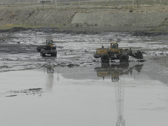 铲车班清理生态湖淤泥)