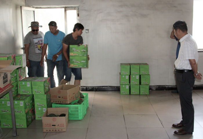为进一步推进教育实践活动的开展,根据额济纳旗夏季天气炎热、气温较高的特点,太豪公司认真组织做好防暑降温工作。公司领导高度重视夏季全员的防暑降温工作,把它作为促进安全生产的一项重要工作抓实抓好,及时把关怀和温暖送到每一位员工的手中。组织采购了西瓜、夏日清凉饮品防暑药品等,及时发放给工作在生产一线的每一位员工。
