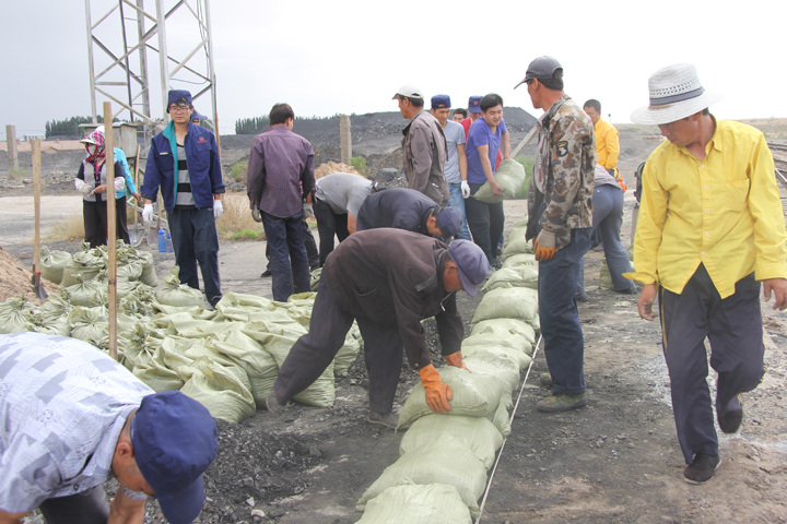 近期,由于连日的暴雨对铁路乌-吉线本井站运行安全构成了威胁,也较大地影响了销售公司的铁路发运。7月2日下午,销售公司全体员工在乌吉铁路本井工区员工的指导下,经过4个小时的共同努力,建造了一道长约140米的防洪墙,有效地保障了乌-吉线的畅通。