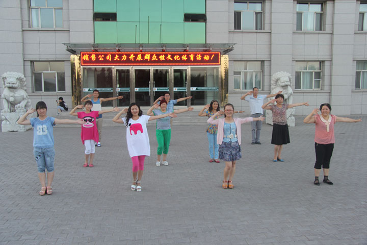 每天晚上七点半,喜欢徒步走的三个一群,五个一伙有说有笑结伴行走;喜欢跳舞的伴随着悠扬悦耳的舞曲旋律,在领舞的带领下,翩翩起舞,大家一起扭扭腰、摆摆臂、摇摇头、踢踢腿,跳一跳,将热情奔放的舞蹈跳得整齐划一,成为该公司文娱活动中一道亮丽的风景线;喜欢球类的年轻人,在篮排球场上尽力体现自己的强健。人群中,有神采奕奕的中年、热情洋溢的青年,人人激情饱满,热情高涨。大家踩着节拍、自如地舒展着身体、尽情挥洒着自己的笑容、处处洋溢着对美好生活的无限向往。销售公司地处乌兰布和沙漠腹地,这里远离了繁华的都市,员工业余生活单一。公司利用上班前时间组织员工集体做广播操,下班时间组织员工跳广场舞、徒步走、篮排球、羽毛球等运动,从而丰富企业员工的业余生活,为企业留住人才创造更好的软环境。