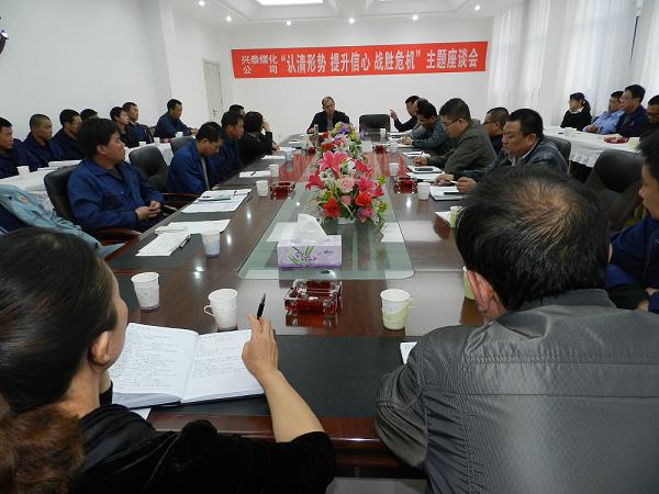 为了进一步加强员工与公司管理层的有效沟通,引导广大职工认清当前公司面临的困难和问题,进一步增强广大职工的危机意识、忧患意识、责任意识,凝心聚力,提振信心,共谋良策,共渡难关,帮助广大员工解决工作和生活中的实际问题,实现公司员工与企业的共同进步与发展。10月16日,兴泰煤化公司开展以“认清形势、提升信心、战胜危机”为主题的座谈会。公司领导班子成员、部门负责人、一线员工共40余人参加了座谈会。