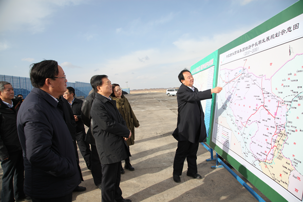 王以廷董事长还就集团铁路中长期发展规划进行了汇报。目前金阿铁路一期金昌至红沙岗段102公里铁路已建成通车,未来将往北延伸400公里与临策线搭界,连通内蒙古策克口岸、乌力吉口岸以及甘其毛都口岸,形成一条蒙古国煤炭、金属等矿产资源进入内蒙古阿拉善以及甘肃地区的资源战略通道,对甘肃实现转型跨越、富民兴陇具有重要战略意义。
