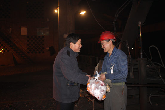 2015年1月1日深夜,常山多元合金公司领导班子赴生产一线慰问在岗工作人员。把新年的祝福和公司的关怀与温暖送到他们的心坎上。