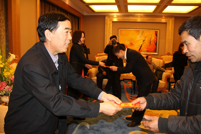 座谈会结束前,王海霞总裁一行还对太豪公司的困难职工进行了慰问,仔细询问了他们的生活状况,鼓励他们保重身体,战胜困难,为他们送上了慰问金并致以节日的祝福。