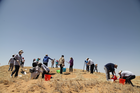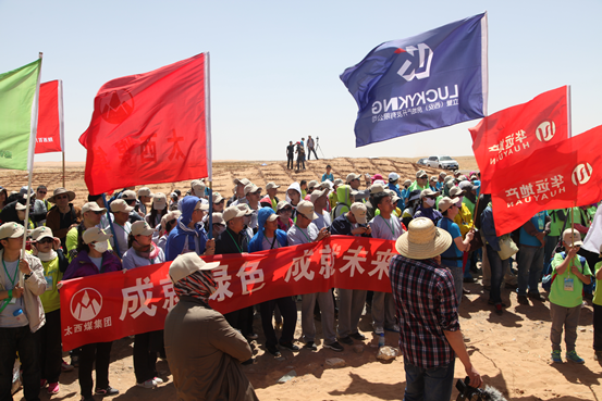 “一个沙岗,又一个沙岗,一个太阳,又一个太阳,野性的旱风扑过来把我拥抱,我的心困惑了,为什么它滚烫而又凉爽?” 这是文人对沙漠风光的真实感受。 (任志强等知名企业家与太西煤集团志愿者合影留念) 通古淖尔系蒙古语,为清澈的湖泊之意,被誉为腾格里沙漠的蓝色眼睛。阿拉善左旗通古淖尔地区,是指腾格里沙漠东缘的三千平方公里大沙漠。长期以往困扰当地政府和居民的是土地沙漠化的加剧。严重制约当地的经济发展和人民安居乐业。从上个世纪开始,政府、企业和驻地居民就已经投身到人与沙的较量中,在这里展开了一场艰巨而没有硝烟的战争——治沙。 沙漠化导致土地退化,土壤结构破坏,土壤养分流失。而土壤肥力的自然恢复需要数十年、数百年,甚至数千年时间。如果用人为措施恢复土壤的肥力,需要的投入量难以计算。保护生态环境、治理沙漠化已经刻不容缓。 沙漠是凝固的海。维护这片海的安宁与美丽需要全员参与。 2015年5月1日,由阿拉善SEE公益机构主办的“拯救10m2”一亿棵梭梭2015年春种活动如火如荼。任志强、袁岳、毛大庆等中国知名企业家、当地政府、企业和社会志愿者共600多人参加的了此次公益活动。 环保需要从日常行为抓起 常说环境保护从自身做起,从一点一滴的小事情做起。在这次公益活动中,我们注意到了所有人水杯自带,吃的简餐,活动启动动员讲话看不到讲话稿。活动现场看不到一点生活垃圾,这些都说明了一种理念的改变,一种认识的提升。 据阿拉善SEE协会工作人员介绍,“一亿棵梭梭”是SEE和当地林业部门合作的战略合作项目。项目规划区域与政府的植被恢复区域互补,旨在使连接而成的绿化带成为一道生态屏障,遏制腾格里、乌兰布和、巴丹吉林三大沙漠接合和进一步蔓延,确保有效恢复当地荒漠植被。这次活动筹办小组严格遵循绿色、环保、简约理念,在活动各环节设计方面充分考虑脆弱的生态环境,尽量做到不留生活垃圾,保持这片沙地的整洁。这些看似小事,实则是大事,很科学、很人性化。只要我们把这些日常生活中的小事情做好了,我们的环境保护工作才能实到实处。 没有界限的治沙攻坚战 5月1日是劳动者的节日,但大家依然冒着酷热种梭梭,一桶又一桶的浇水。有年过花甲的老人、有中学生、大学生志愿者,有天真烂漫的小孩,有的家庭甚至全员参与。这种力量已经超越了年龄、区域,民族…….形成一股强劲的精神动力。在现场,这样一个温暖的镜头感动了所有人:两个不到十岁小孩用一个木棒抬着水桶,来回穿梭在大人中间,浇灌着一棵棵梭梭苗子。稚嫩的小手不停的擦试着额上的汗珠…….“我爸爸妈妈也来了。看,在那边……”其中一个小孩对着镜头,扮着鬼脸说。顺着小孩指的方向我们看到一对年轻夫妇正在专心致志的种树,丈夫挖坑添坑,妻子扶着树苗,孩子在浇水,这无疑是一幅最美的劳动画面。 (太西煤集团公司志愿者正在种梭梭) “我的根在阿拉善,随父辈去了陕西,对阿拉善很有感情。孩提时代,我记忆中的阿拉善很美,通古淖尔地区湖泊环绕,沙金湖、艾伊特湖、天鹅湖……大大小小有数十个湖泊,天水一色,野鸟飞翔,黄色的沙涛,苍茫没有尽头…….”“每年这个时候我都要来这里植树,能为这里奉献一点微薄之力,这是很有意义的事情。” 来自陕西的志愿者表达出了他的心声。他是两鬓斑白,目光矍铄的老人,更像一位诗人。 “我是北京的大学生,对于沙漠的认知仅限于电视镜头和书本图片,这次身临其境,感触很多,北方的治沙工程真是一个壮举,北京人说北京的沙尘暴是内蒙古刮过去的,我认为这是一种很偏激的说法,沙漠化治理已经是一项系统工程,没有人与人、区域与区域之分,所有人都应当积极行动起来,身体力行的投入到这场人沙斗争中。这也是实现绿色中国梦的一种具体体现。”来自中国人民大学的一位学生说出了他的感受。 “良好的生态环境和充足的自然资源是企业发展的基础和条件,实现经济发展与环境保护双赢是新形势下企业发展的必然选择。我们太西煤集团公司40人参加这次种树活动,旨在员工意识中树立生态文明理念,让员工爱企业、爱家乡、爱护环境。作为阿盟本土企业,集团每年都要投入大量的人力、物力植树造林,绿化山川,这是一种义务、更是一种责任。”参加此次活动的太西煤集团公司一位领导说出了企业对环保的重视和认识。 …… 重新思考人与沙漠关系 大自然赋予这片土地神奇与魅力。通古淖尔,以湖与沙绽放异彩,注定有它的独特与浪漫。这里是沙的世界,更是水的天堂。这里是湖与沙的奇缘,更是沙与湖的偶遇。是沙造就了湖,也是湖成全了沙。最可贵的是,面对漫漫黄沙,这里的人学会了换一种思维看沙漠,把“绿化”与“产业化”相结合,把“治沙”与“致富”相结合,实现了生态和经济同频共振。每年慕名而来的游客,做客沙漠人家。有效地带动了当地经济发展,驻地人民的钱袋子也逐渐鼓起来了。 (太西煤集团志愿者在集团公益林牌前合影) 几年前,面对茫茫沙海,当地居民除了茫然还有担忧,如何过好自己的小日子?现在,他们找到了答案。当地充分利用沙区丰富的光热水土资源,突出以促进农民增收为重点,把防沙治沙生态建设与沙产业有机结合。沙葱、沙芉、苦菜,这些天然野菜,已经在市场上很走俏;田园式农家乐,绿洲上农牧民小