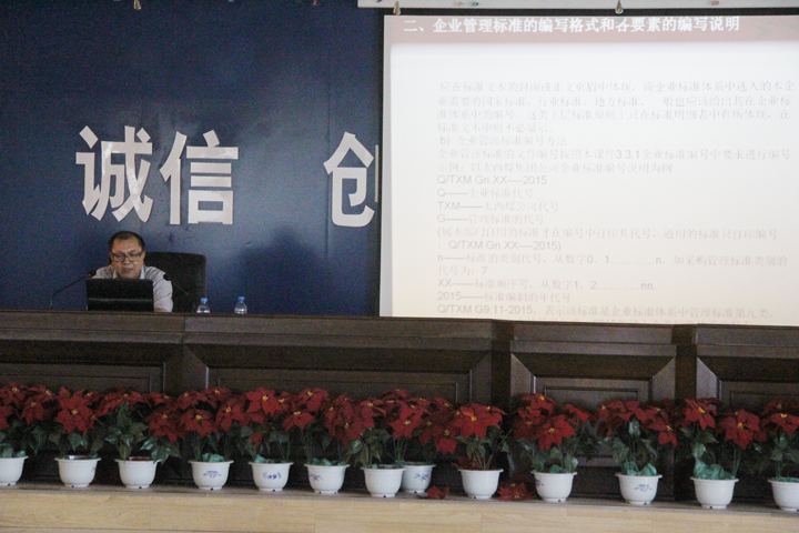 培训会上,刘瑶德同志讲了企业标准编写内容及要点参考,着重从企业标准体系的建立与技术标准标准要点、管理标准编写要点、工作标准编写要点、标准的实施、企业标准体系评价与改进、TCS 2009与TCS 2010修正版标准编写软件的操作方法与注意事项和TCS 2009 常见使用问题汇总等7大方面内容进行了细致讲解;孙勇同志从公司标准化工作例会制度、标准化工作学习制度、下一阶段标准化工作安排和管理标准及工作标准编写格式等4个方面进行了认真分析。使与会人员更全面深入的了解了标准化工作的相关内容。讲授中,通过许多生动的案例为我们展示了企业标准化在企业发展中的影响与作用,使与会同志更直观地意识到标准化对公司发展的战略价值与意义。认真做了笔记,讲课中还穿插了互动环节,与会人员对存在的疑问进行了提问,主讲人员耐心细致的回答了相关问题。