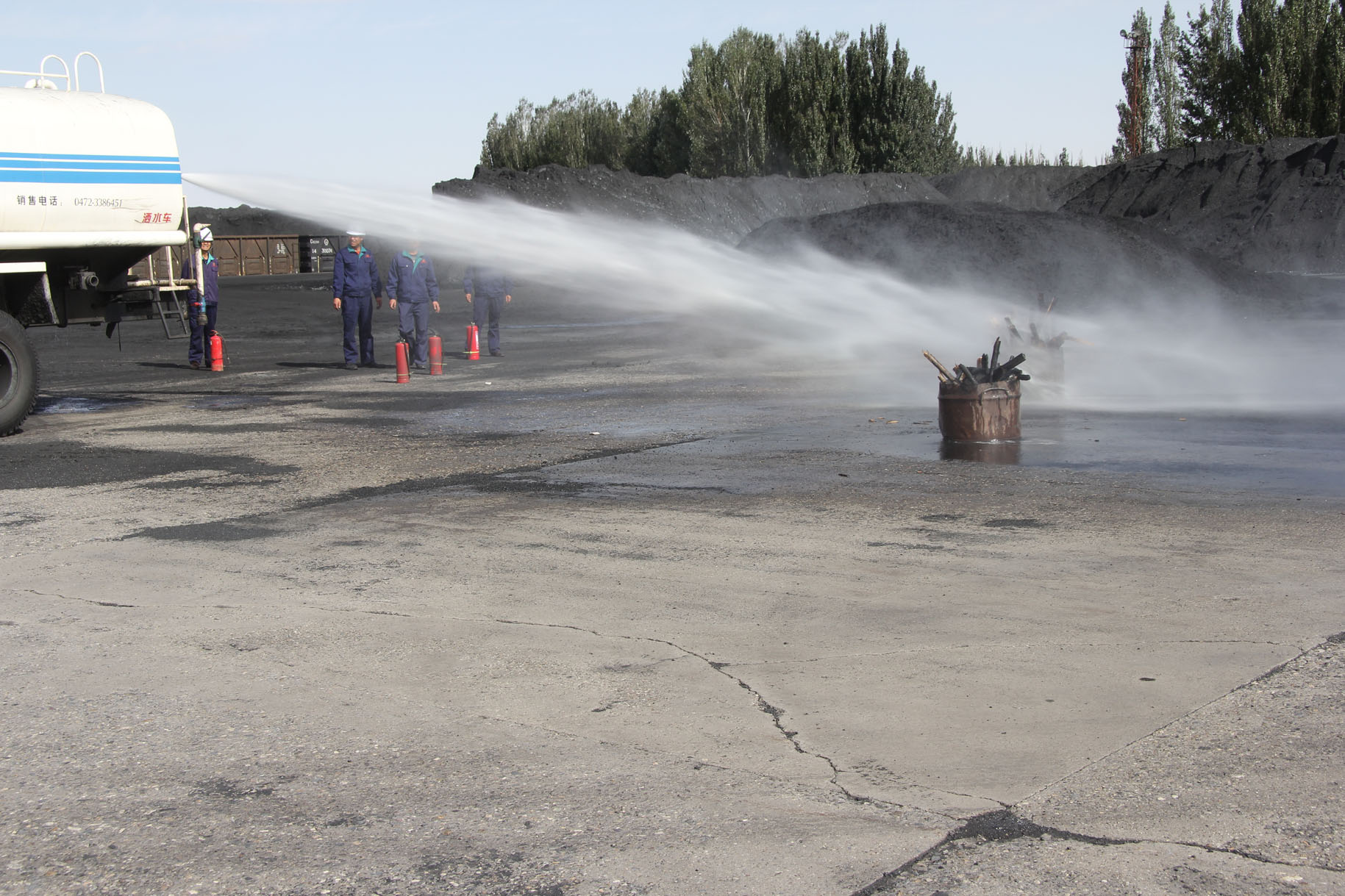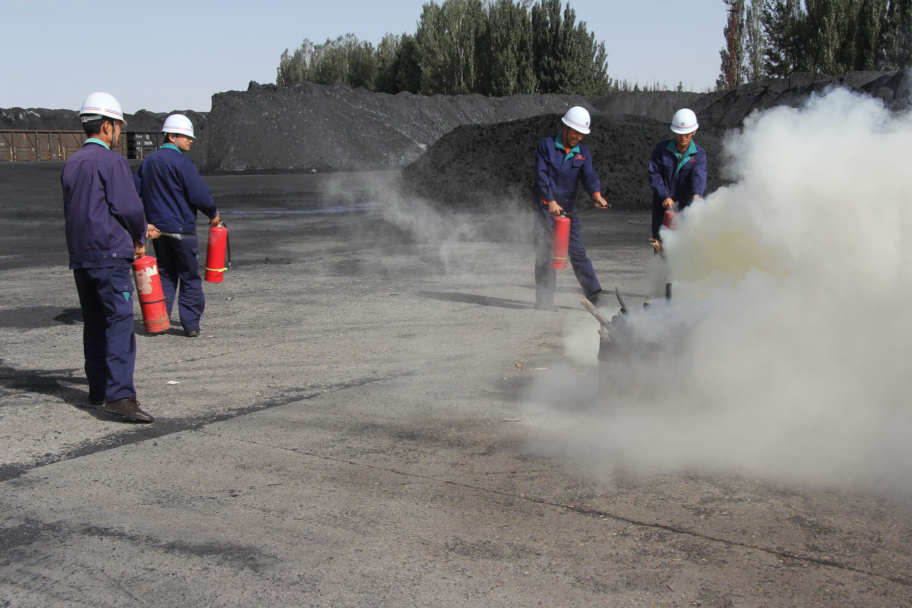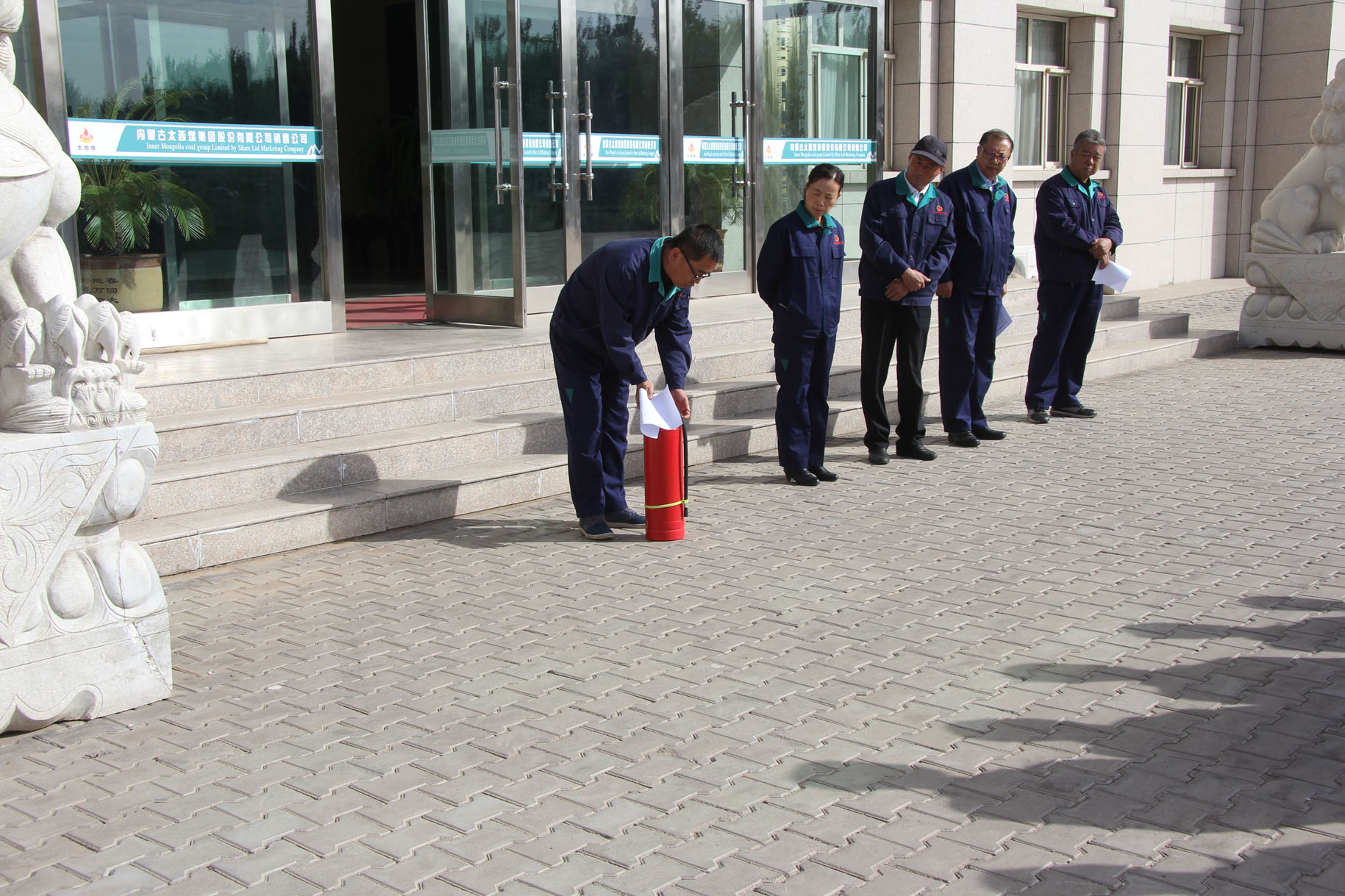 演练开始前公司全体员工在办公大楼前列队举行活动启动仪式,公司领导做了动员讲话,并结合单位特点和实际情况,详细讲解灭火器的分类、如何正确使用灭火器等消防知识。随后全体人员到本井洗煤厂指定地点观摩演练。随着灭火行动小组组长向演练总指挥报告一切准备就绪,请求指示时,消防演练总指挥宣布演练开始,灭火行动小组手持灭火器和水枪紧张、有序地进行灭火演练。