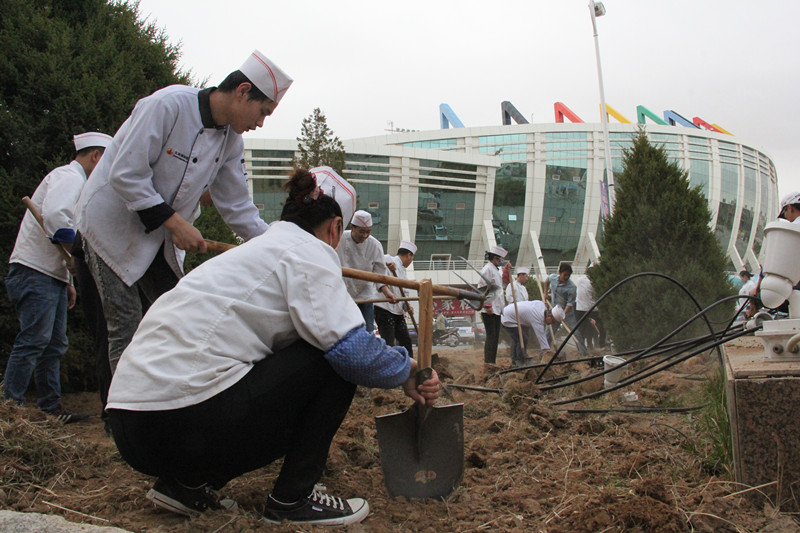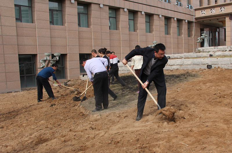 4月,春的气息弥漫着整个巴镇,偶尔的沙尘也掩不住绿意盎然。在这个孕育生命的季节里,为解决饭店四周草坪缺损问题,进一步美化饭店环境,为到店客人创造一个优美舒适的消费环境,太西饭店组织十个部门100多名员工分批次对饭店南侧一千多平米的草坪进行了翻土除草,为新的草坪绿化工作奠定基础。