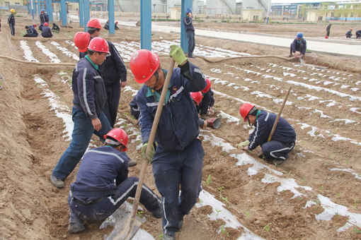 近日,金昌鑫华焦化公司组织员工在公司内部开辟了约3500㎡的蔬菜园。