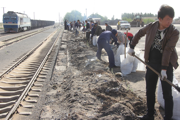 销售公司地处乌兰布和沙漠腹地,结合自身地理位置和环境条件,根据季节变化,有计划、有步骤的协同呼铁局乌海车务段本井工区开展对铁路的维护、防护活动。通过两家单位的联合防洪实战演练,不仅增强了公司对洪涝灾害的应急处置能力,同时也履行了销售公司应尽的社会责任,体现了“合作共赢”的优良传统,提高了广大员工的凝聚力。