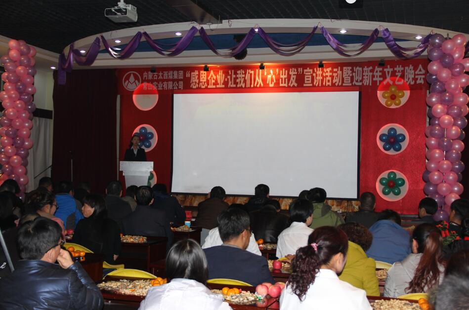 闻歌起舞辞旧岁,欢声笑语迎新年。12月28日晚,常山实业公司举办了“感恩企业·让我们从‘心’出发”宣讲活动暨2017迎新年文艺晚会,150多名干部职工欢聚一堂,共同观看晚会,欢送砥砺奋进的2016年,喜迎充满希望的2017年。整台晚会中,歌曲、舞蹈、小品和职工教育读本《职场那些事儿》部分精彩文章分享,节目异彩纷呈。晚会还特别邀请了金昌鑫华焦化公司党政工领导班子成员参加。