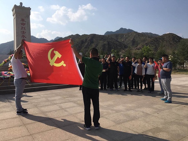 “我自愿加入中国共产党,拥护党的纲领,遵守党的章程,履行党员义务......”,接下来全体党员佩带党徽,在烈士纪念碑前开展重温入党誓词活动,在庄严肃穆的气氛中,党员们面对党旗,举起右拳,再一次向党宣誓,以饱满的激情和声音传达了身为共产党员的自豪感和使命感。