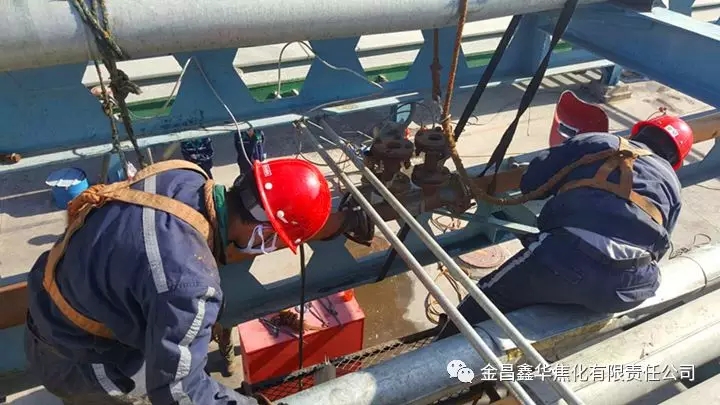 此检修属于特级作业,检修人员严格按照特级作业规范办理特级动火票、临时用电票、高处作业、检维修作业票、抽堵盲板等作业票,且现场安全措施及监护人员到位确认后实施作业,同时要求检修人员严格按照检修规范实施作业,完成了油库粗苯装车流量计的焊接安装工作。