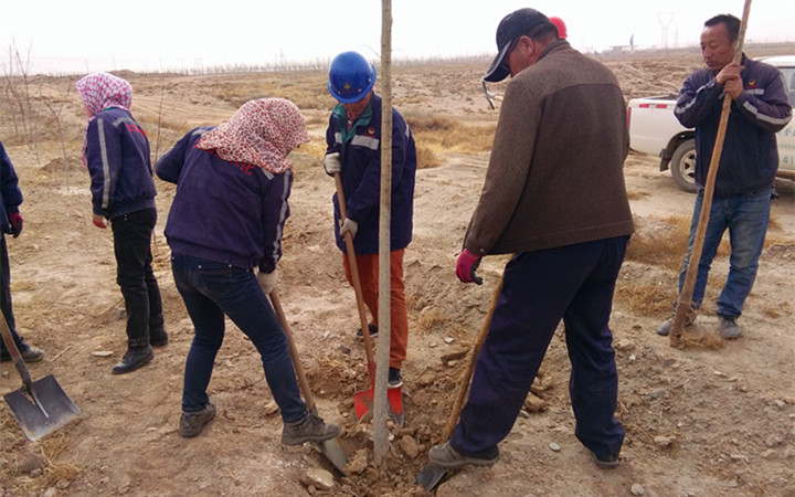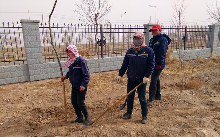又是一年植树季。为绿化厂区,建设美好家园,扩大绿化成果。4月9日,公司采购200多棵国槐、刺槐、榆树对枯死的树木进行补种,为家园的建设添砖加瓦。