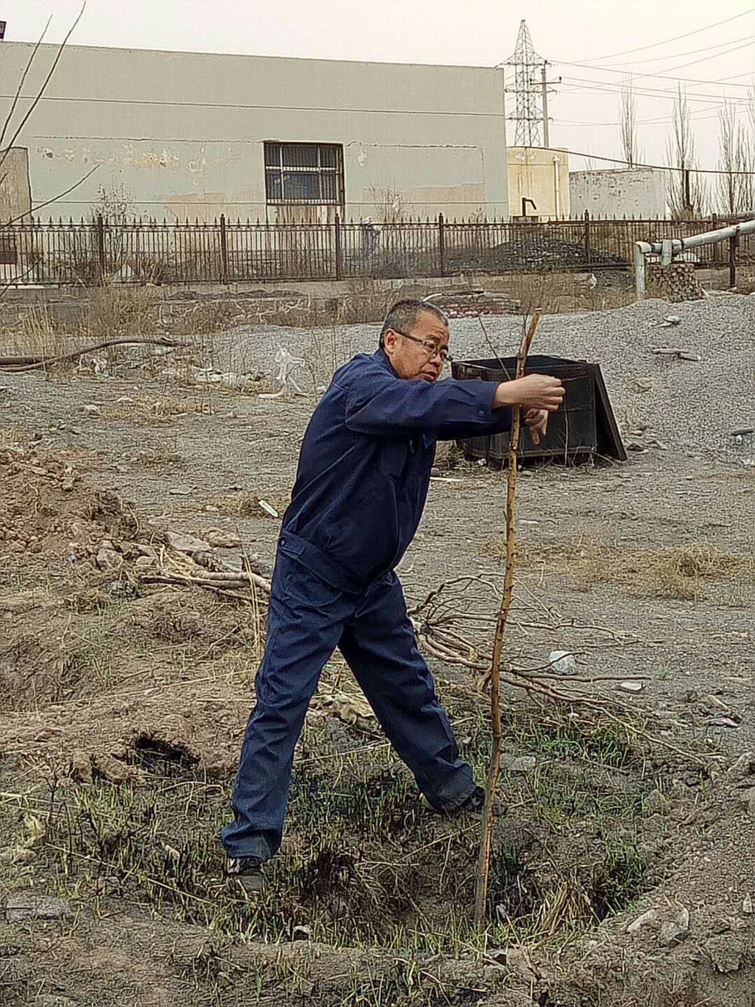 兴泰煤化公司综合办保安王银己是一位地地道道的“民勤”人,但是他举家在“山上”也呆了二十余年,在他的印象中,矿区周围受环境地质等因素的影响,难见绿意,突兀荒凉。近些年就不一样了,公司随着对生态环境加大治理,园区的生态环境逐渐好转,道路宽了,植被草木也变多了,居民的生活环境更舒适了。说起此次春季造林,王银己说:工作之余能安排这样的义务植树劳动,身体也锻炼了,更多的是感受到植树带来的快乐,尤其每每看到成活的树苗,有一种成就感”,当然,他已不是第一次参加公司的义务植树活动。抬着树苗的青年员工姜涛更是忙得不亦乐乎,他负责开水车浇灌没有滴灌种植区,小伙子不怕受苦,也能干,每天跟王银己师傅浇完最后一棵树苗,来的早,回的晚......