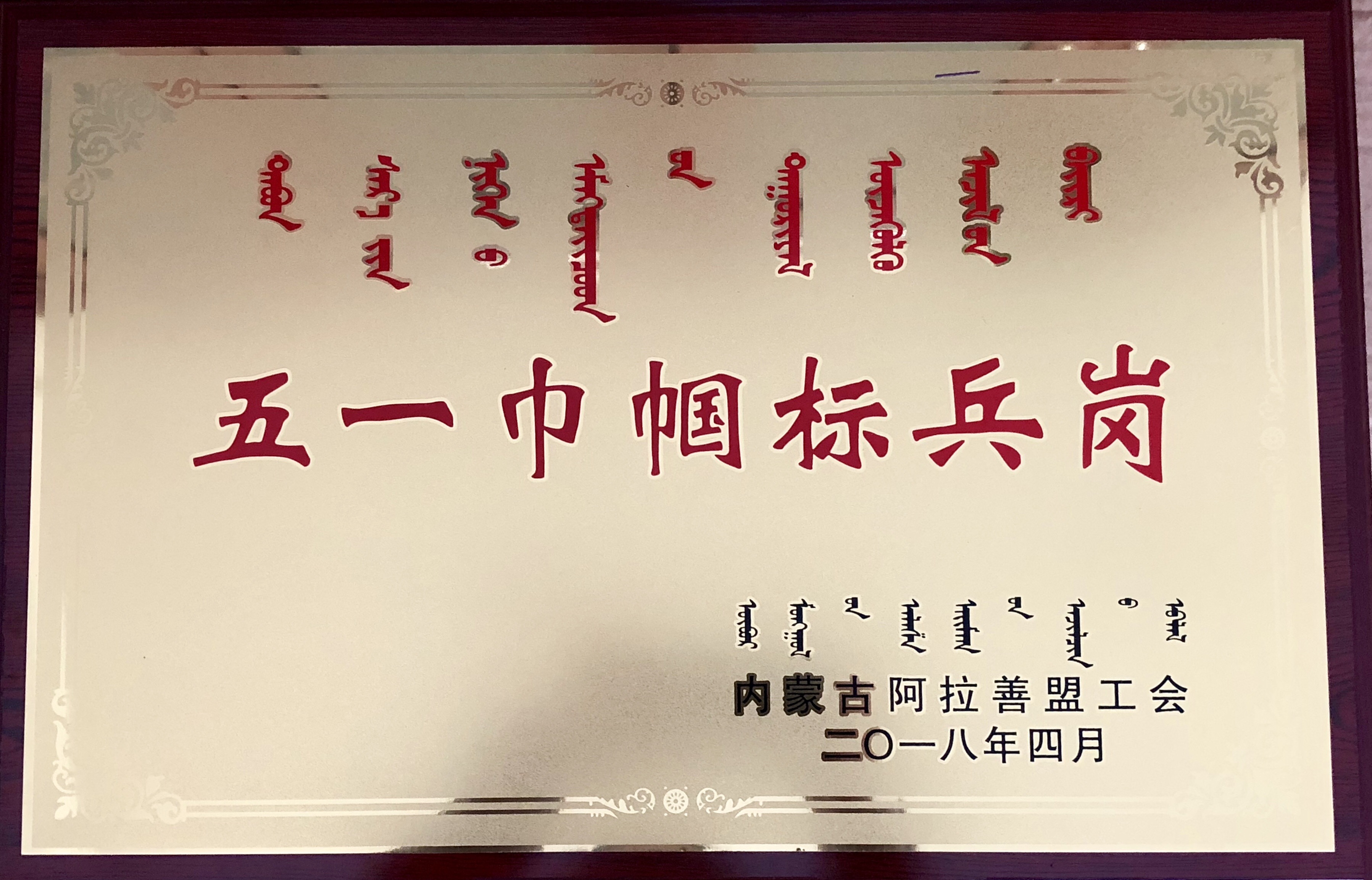 根据阿工办发〔2018〕17号“阿盟工会关于推荐评选全盟五一劳动奖的通知”和额工发〔2018〕7号关于推荐额济纳旗“五一劳动奖”的通知精神,经过太豪公司各部门评审推荐、公司统一筛选并完成一系列申报工作。在24日和26日分别举办的盟级、旗级“五一”表彰活动中,太豪国际物流公司地磅房被评为阿拉善盟“五一巾帼标兵岗”、太豪国际酒店喜获额济纳旗“五一劳动奖状”、公司财务部主管王秀梅获得额济纳旗“五一劳动奖章”。
