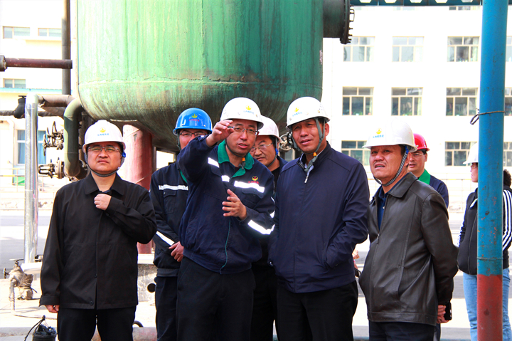 4月2日,集团公司总经理石玉东一行到金昌鑫华焦化公司调研。甘肃太启新能源公司副总、金阿铁路总经理柴峰,公司总经理黄绍东及领导班子成员陪同。石玉东一行先后到煤场、焦场、焦炉地下室、冷鼓风机房、硫磺、化验室等岗位实地调研。黄绍东详细的介绍了生产系统的工艺流程、生产现状等基本情况。