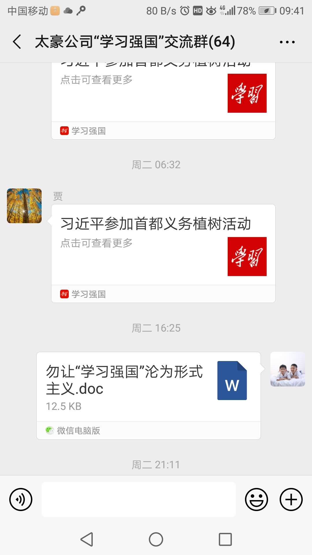 为了方便管理,公司建立了“公司学习强国群”,并制定了周汇总、月通报制度,要求各部门将学习强国本部门人员学习积分情况通过手机截图或者表格形式发送到群,由综合办公室相关负责人进行汇总、通报。
