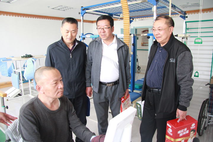 2019年5月10日,销售公司党政工领导一行来到蒙中医院康复科,看望慰问患病员工龙天云,并送上慰问品,鼓励他早日康复,战胜病魔。