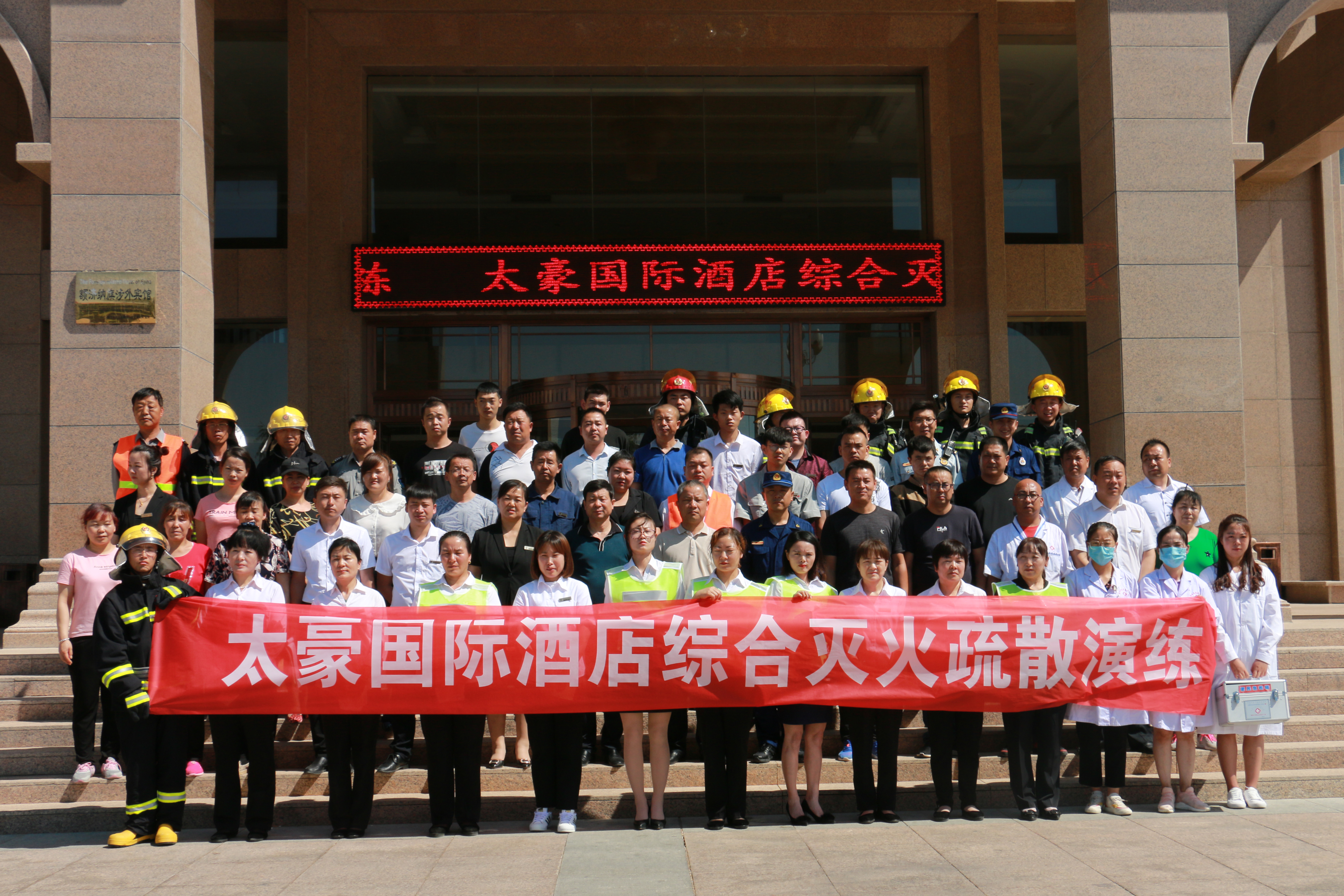 为进一步强化酒店员工消防安全意识,提高酒店与消防、市政、医院等部门联合处置火灾的应变能力,6月底,酒店积极与其他部门沟通协调制定了《综合灭火疏散演练预案》。经过多次预演后,7月5日上午,演练正式开始。太豪国际酒店总经理胡生君、额济纳旗应急管理局石多仁副局长、消防救援大队教导员武洪波到现场指导,消防、市政、旗医院120急救中心工作人员和酒店员工共计60余人参加了演练。