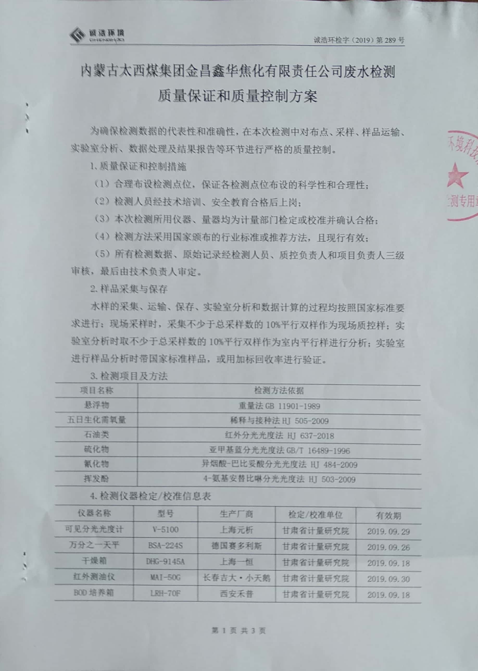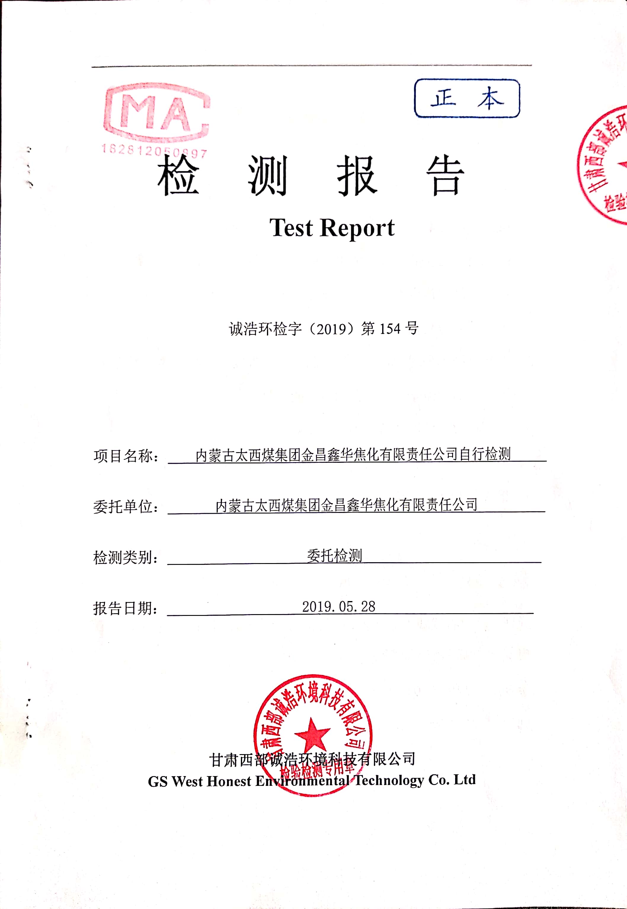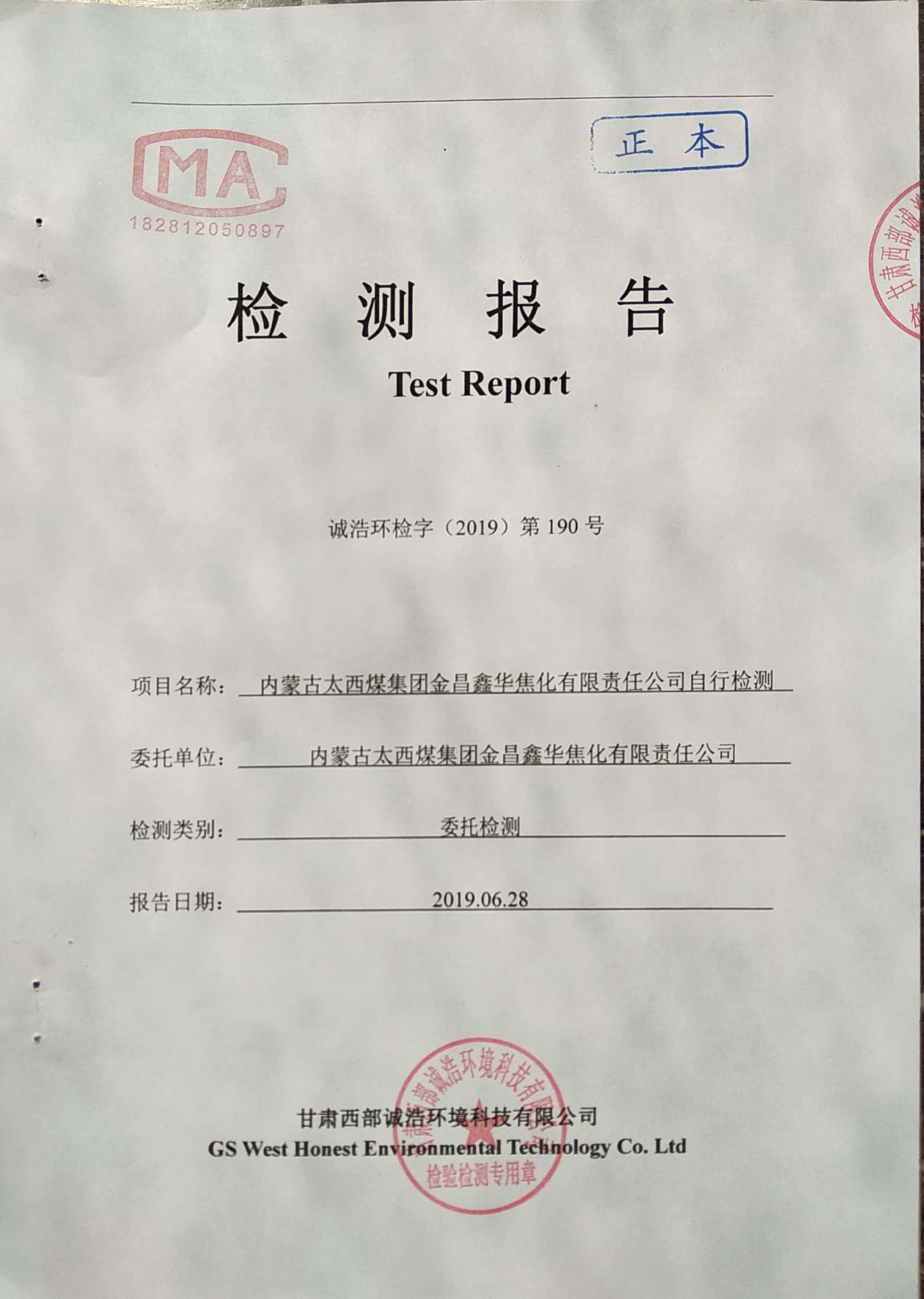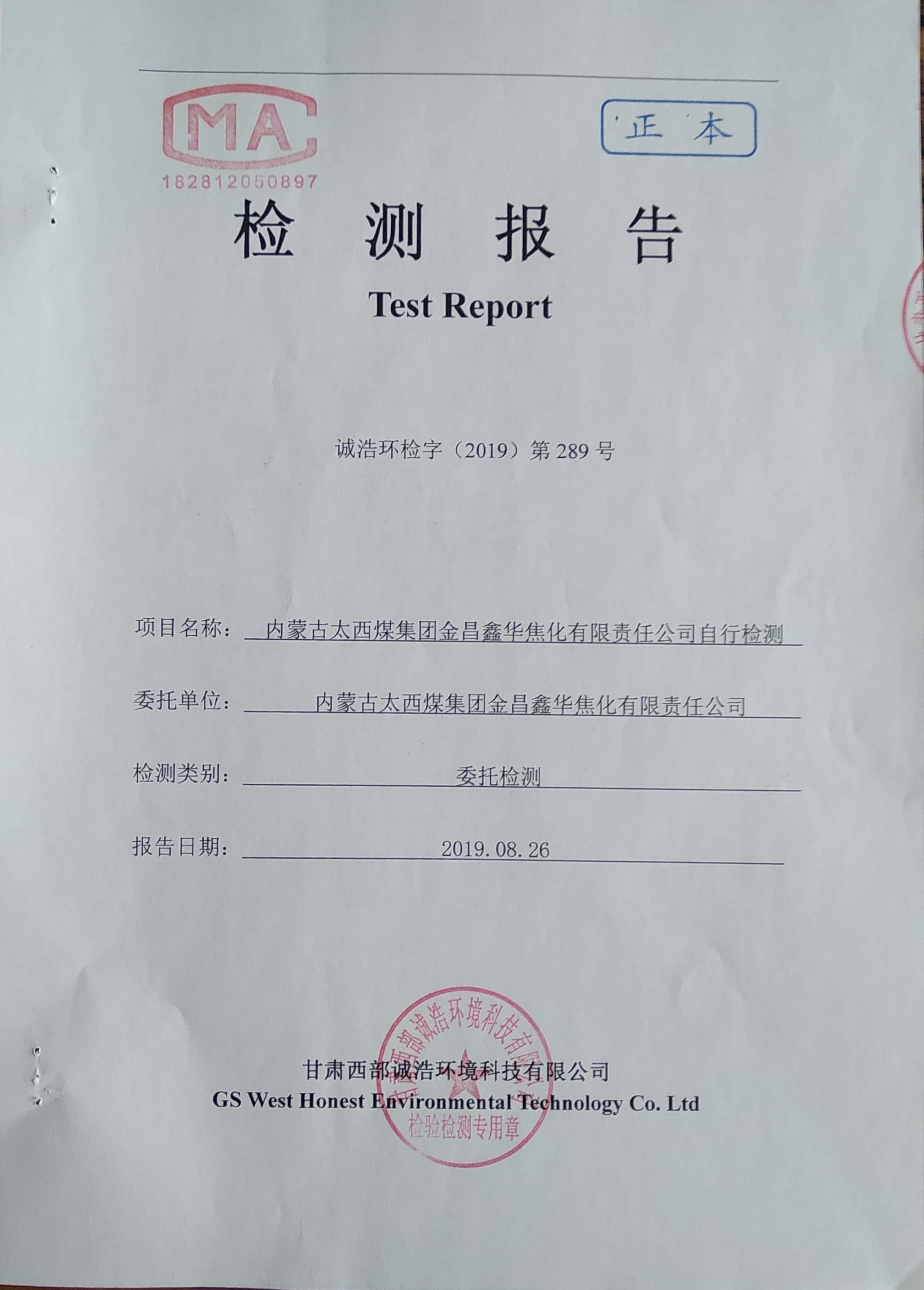 金昌鑫华焦化公司环保信息公开自测报告