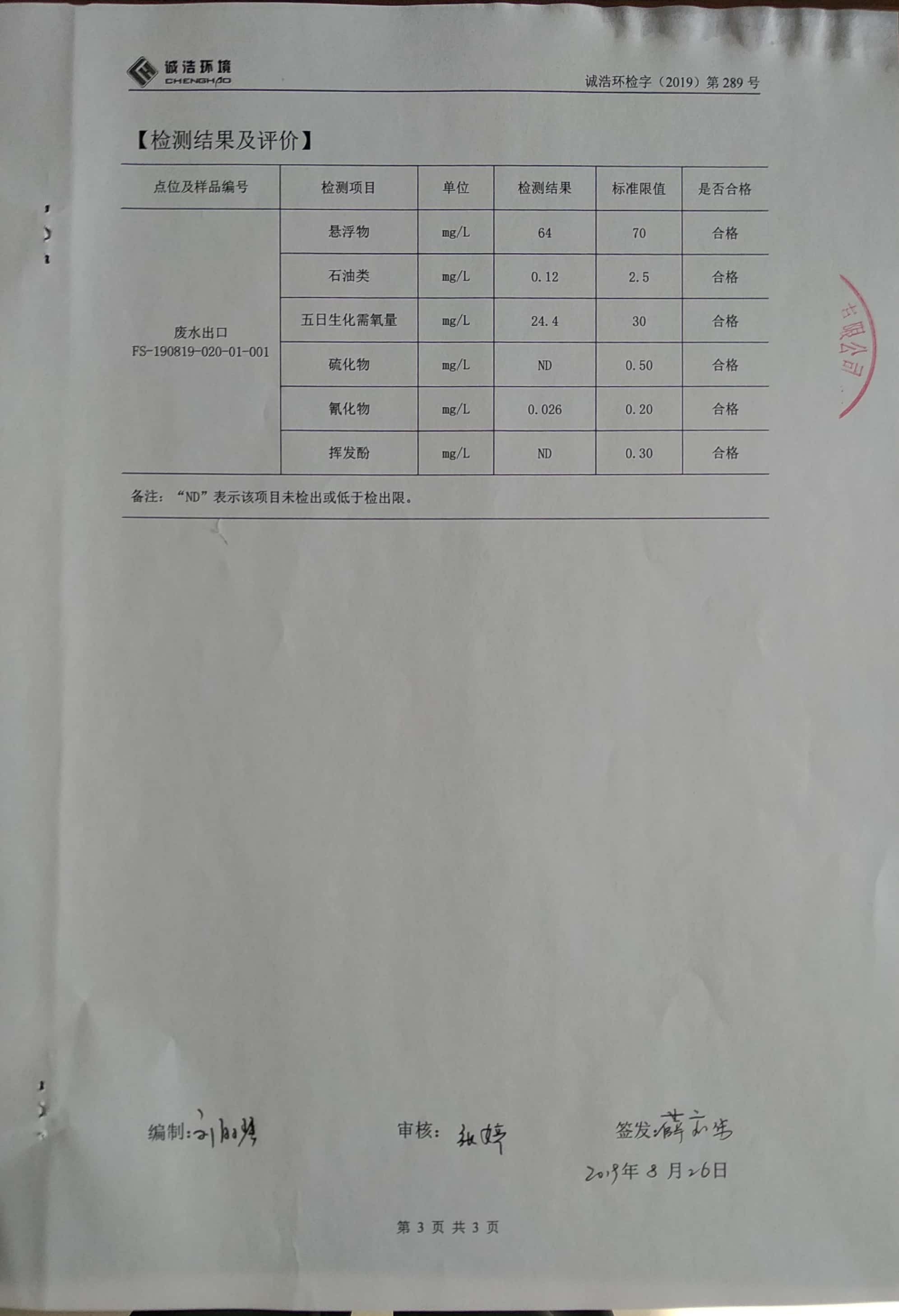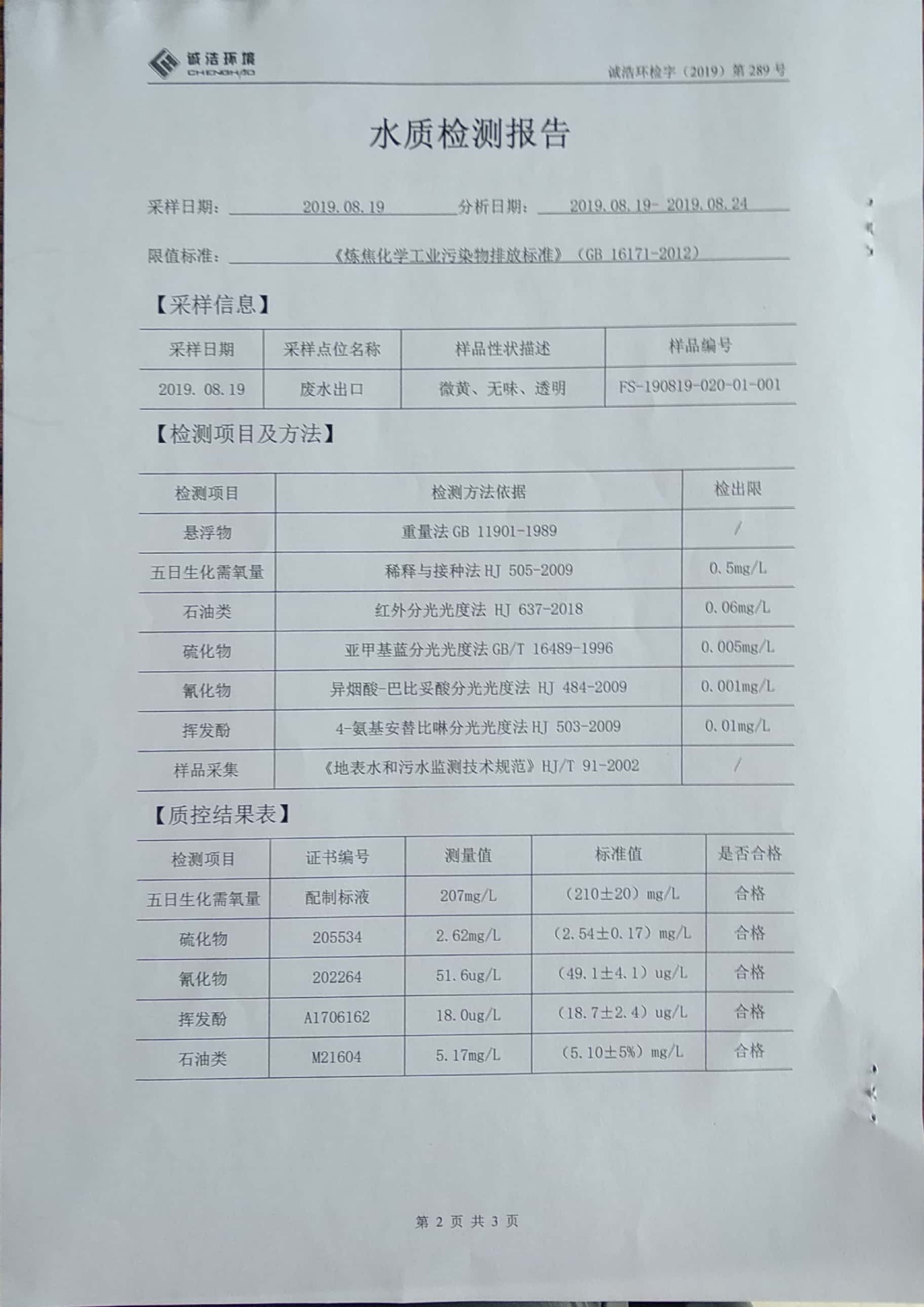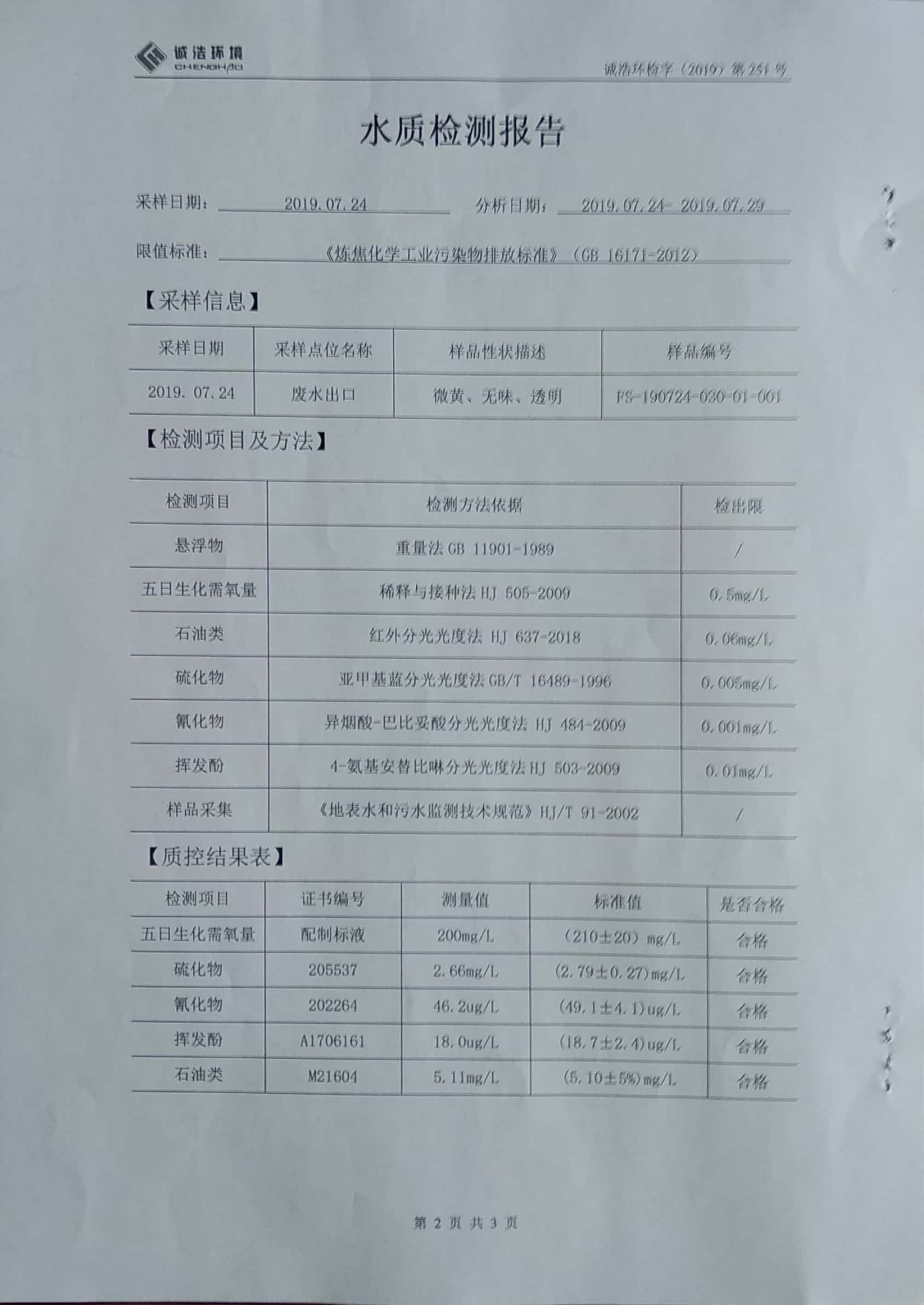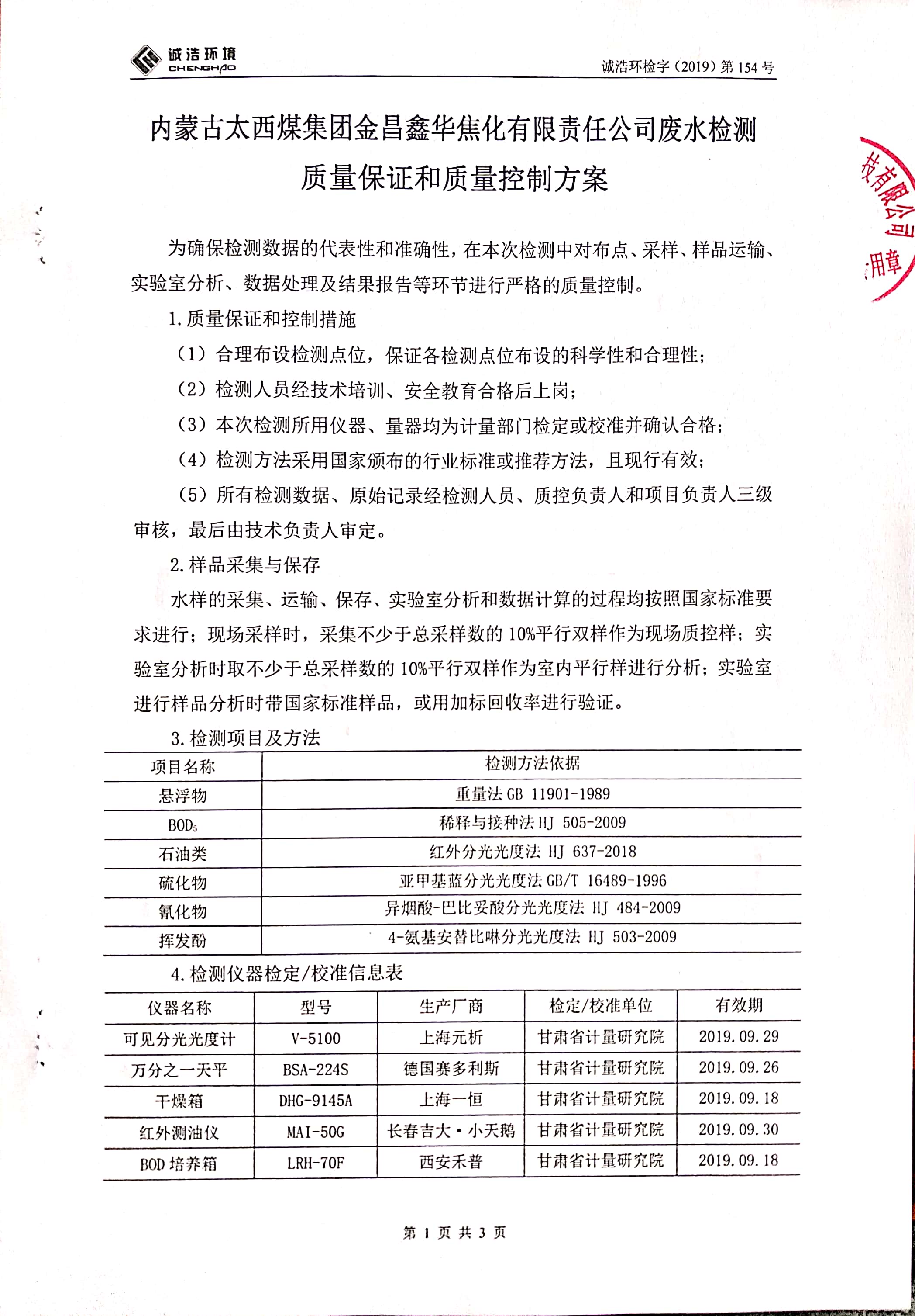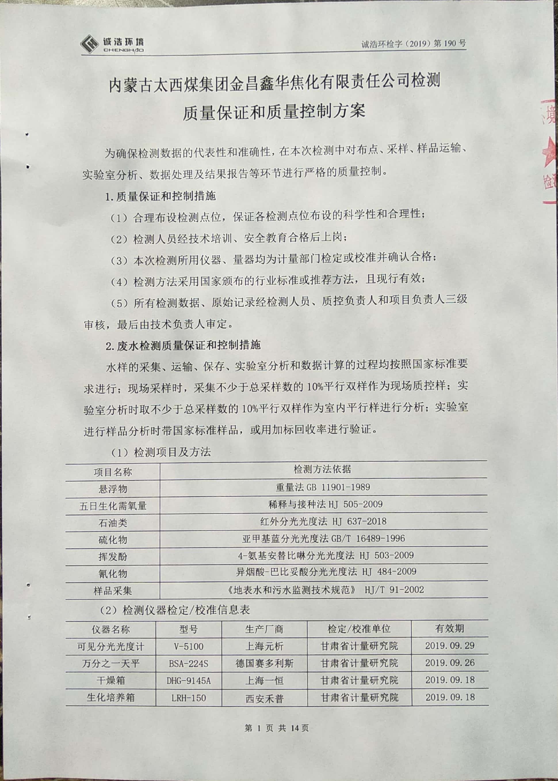 金昌鑫华焦化公司环保信息公开自测报告