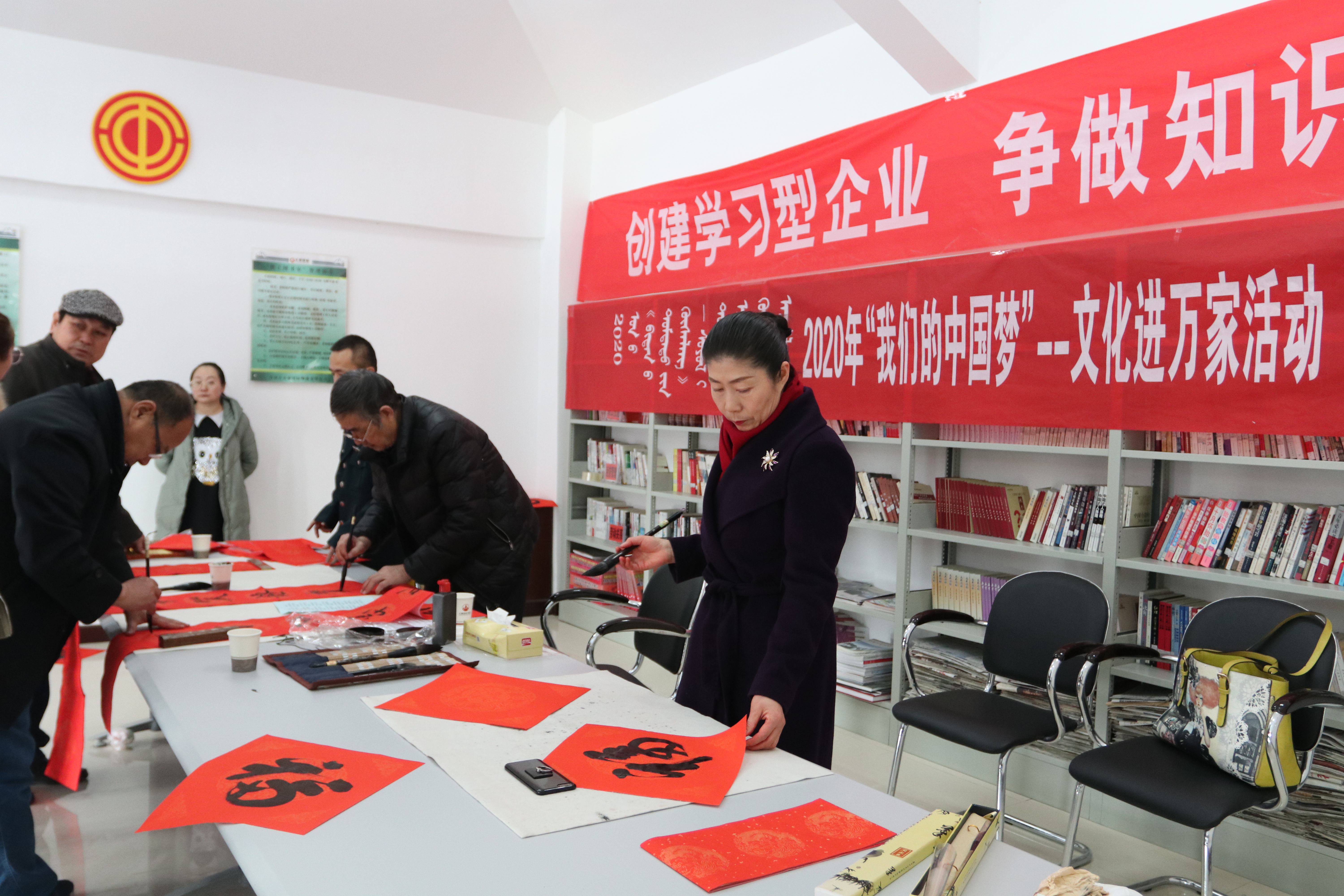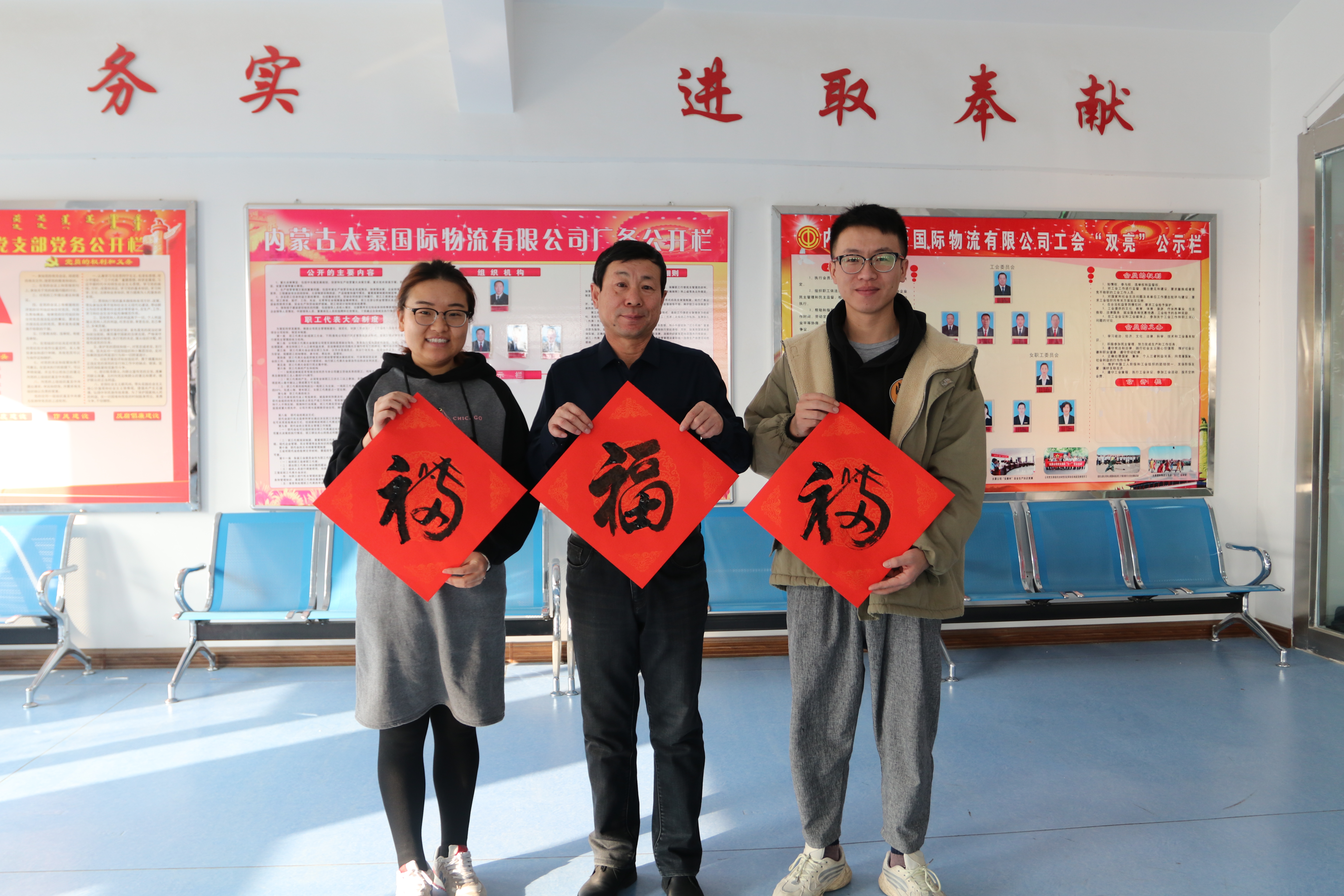 新春佳节即将来临,为增添过年的喜庆氛围、丰富公司工会会员文化内涵、进一步传承传统文化。2020年1月16日,太豪公司工会委员会特邀2020年额济纳旗“我们的中国梦-文化进万家”迎新春、送春联惠民活动一行书法家到公司开展“写对联 送祝福 迎新春”活动。共为职工手写春联、福字100余份,在传递浓浓年味的同时,也给公司职工送去了新春的祝福。