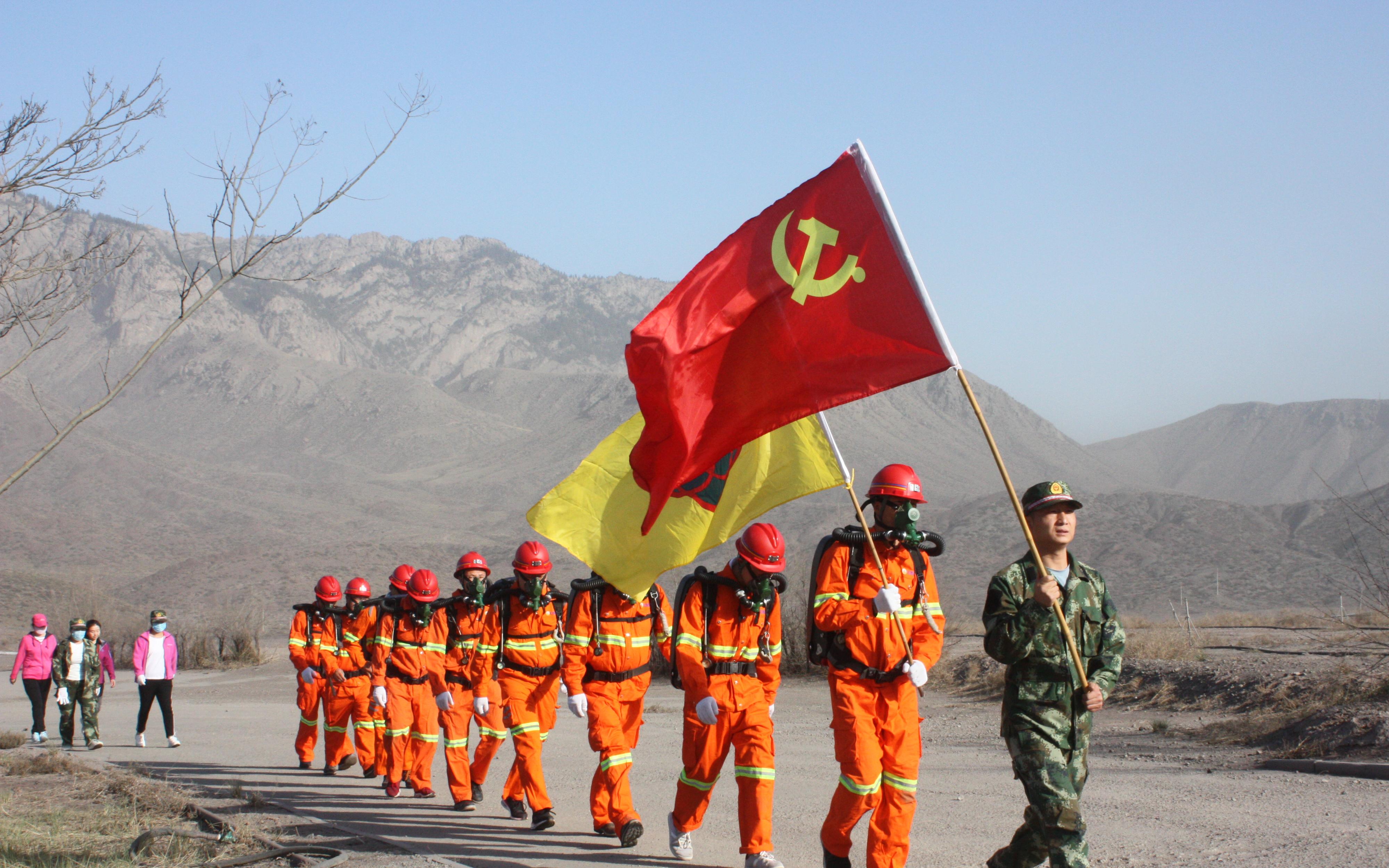 4月28日,矿山救援大队开展“负重徒步行走”庆五一暨主题党日活动;由党员干部、救护队员和后勤保障人员共20多人参加;此次活动由大队党支部、工会、青年团联合组织。