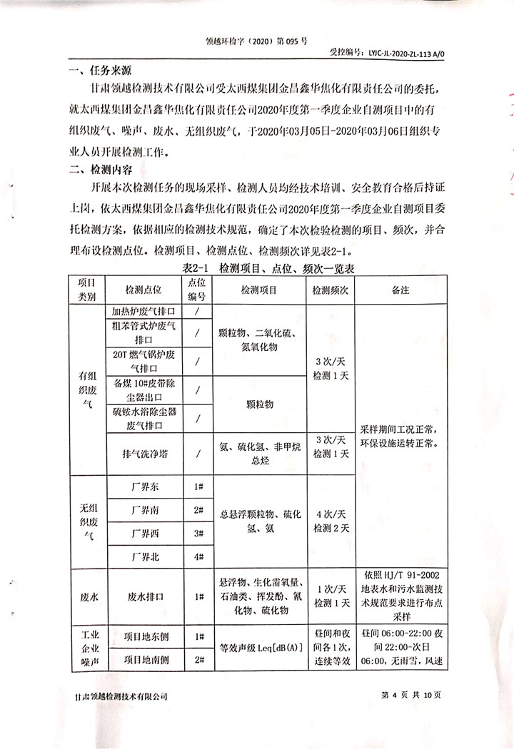 2020年金昌鑫华焦化4月5月水检测报告公示