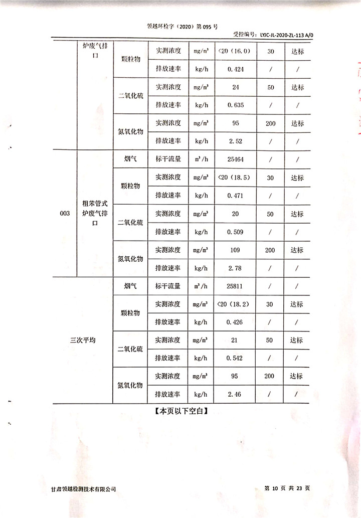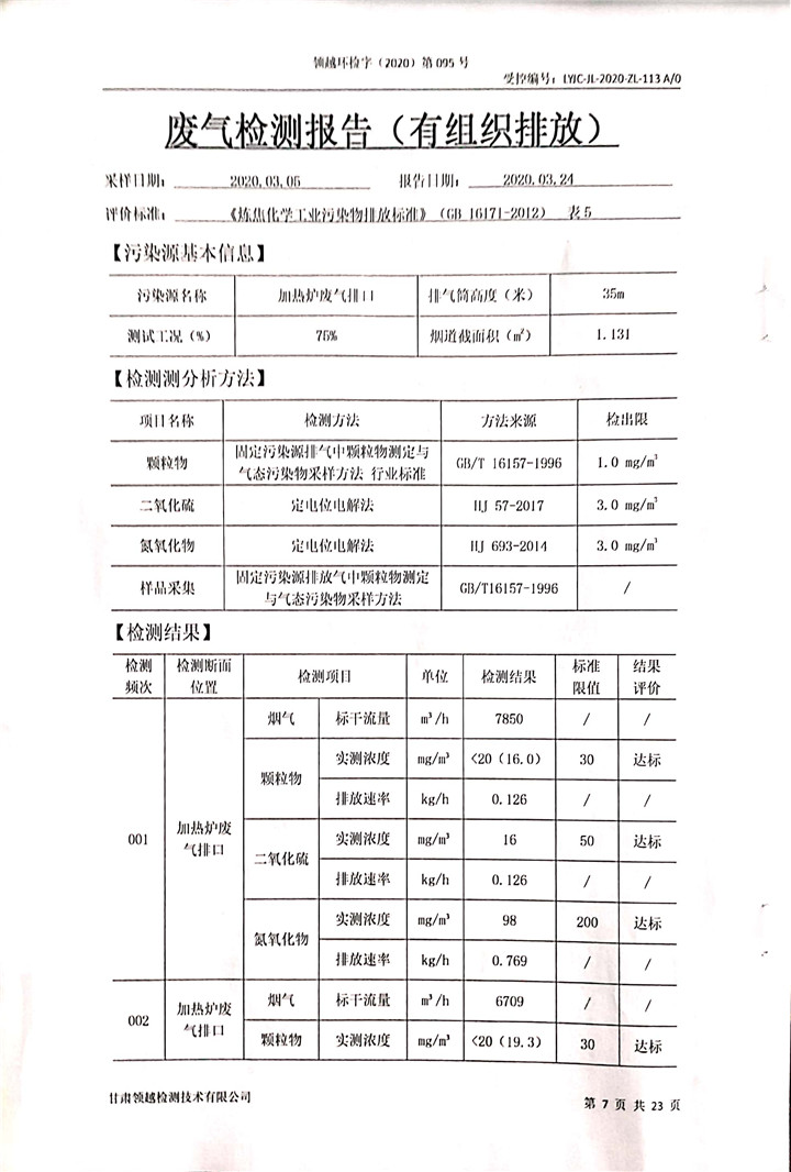 2020年金昌鑫华焦化一季度炉顶废气检测报告公示