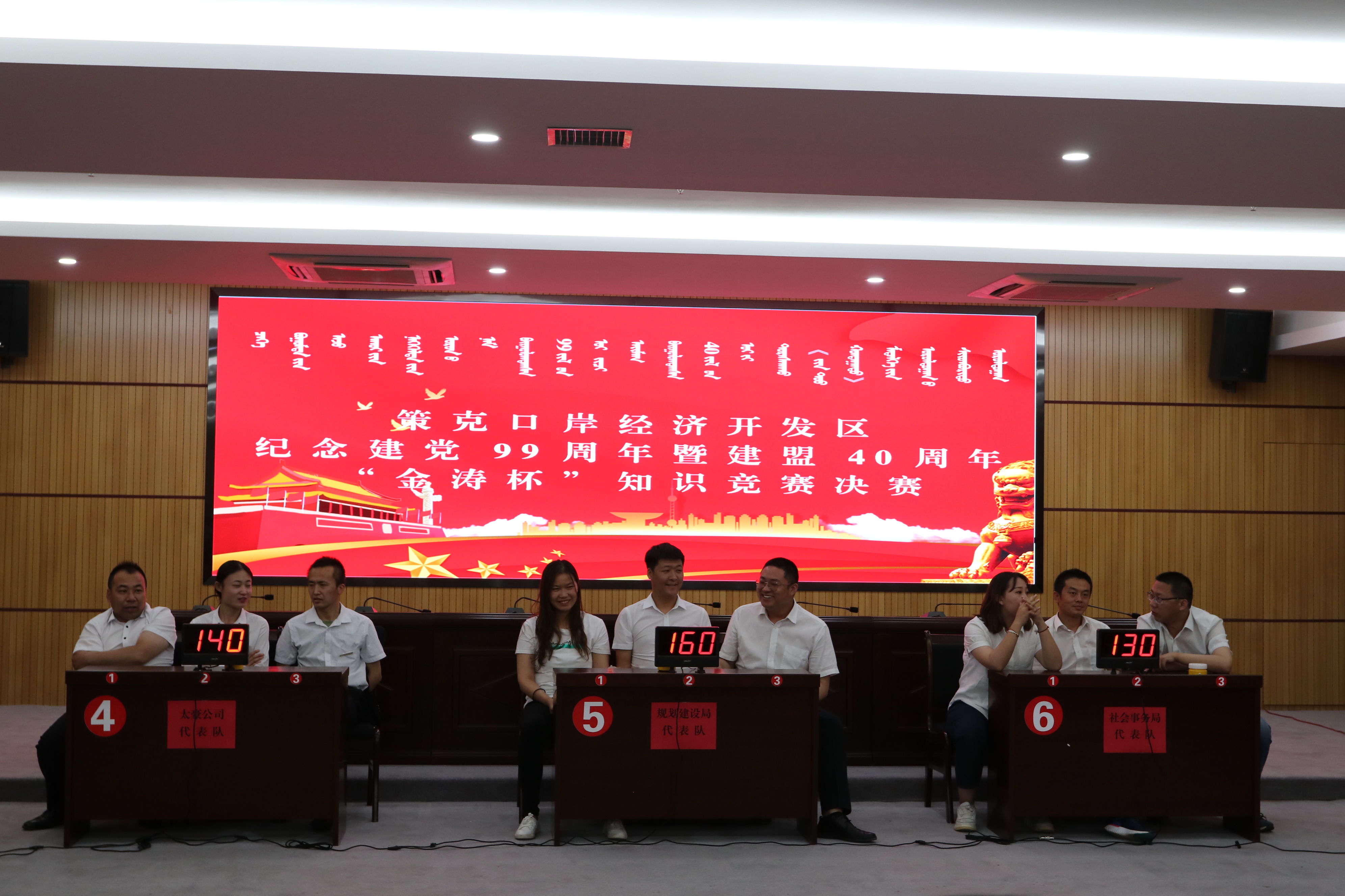 为深入学习贯彻习近平新时代中国特色社会主义思想,不断提高党员干部政治理论学习的积极性和主动性。6月23日-24日,策克口岸经济开发区党工部在大数据中心五楼党员实训中心举办了纪念建党99周年暨建盟40周年知识竞赛活动。 开发区各党支部共选派了24支参赛队参加竞赛活动。