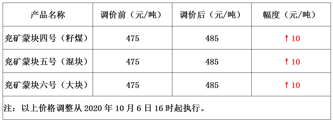 内蒙古石拉乌素煤矿10月6日上调煤价10元/吨