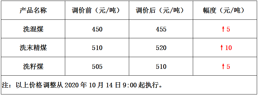 内蒙古黄陶勒盖煤矿10月14日上调煤价5-10元/吨