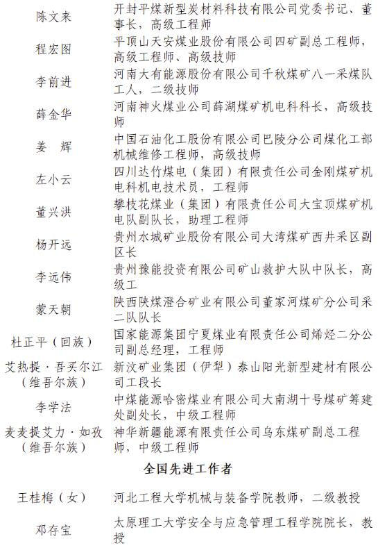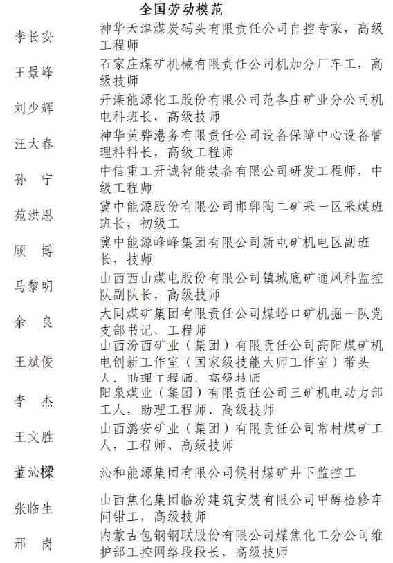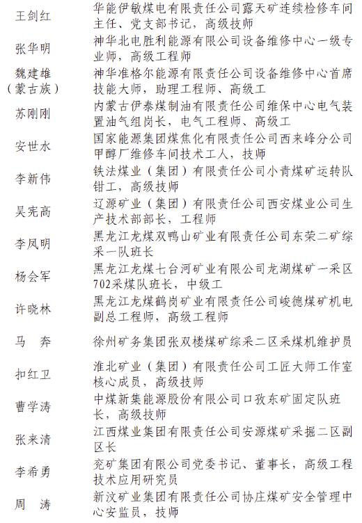 煤炭行业47人入围2020年全国劳动模范和先进工作者表彰
