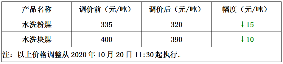 内蒙古汇隆煤矿10月20日下调煤价10-15元/吨