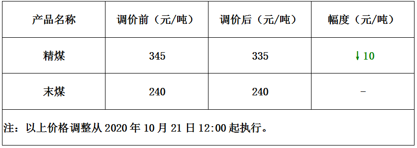 内蒙古国源矿业10月21日下调精煤价格10元/吨
