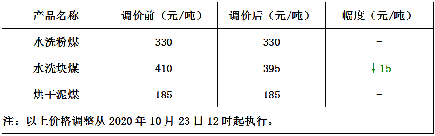 内蒙古罐子沟煤矿10月23日下调水洗块煤15元/吨
