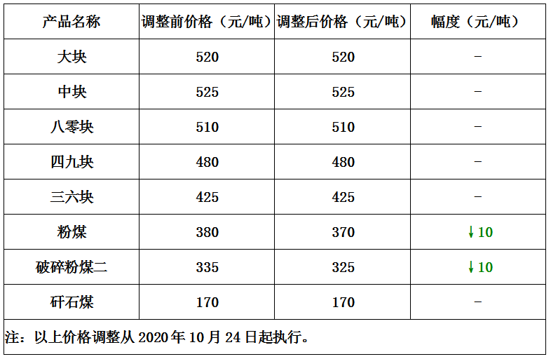 内蒙古阳堡渠煤矿10月24日起下调部分煤价10元/吨