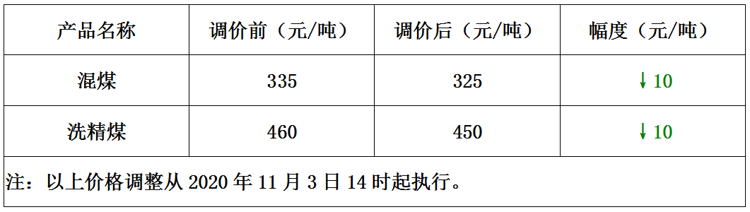 内蒙古伊化矿业11月3日下调煤炭价格10元/吨